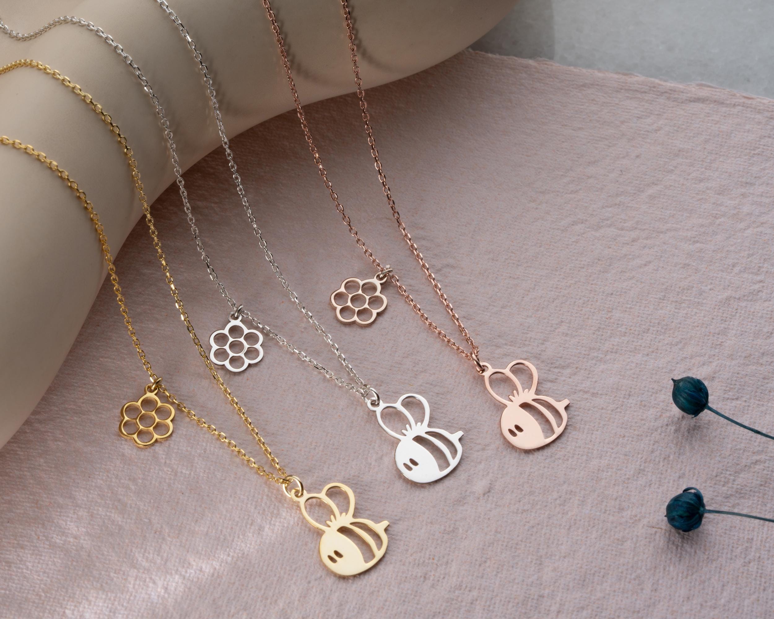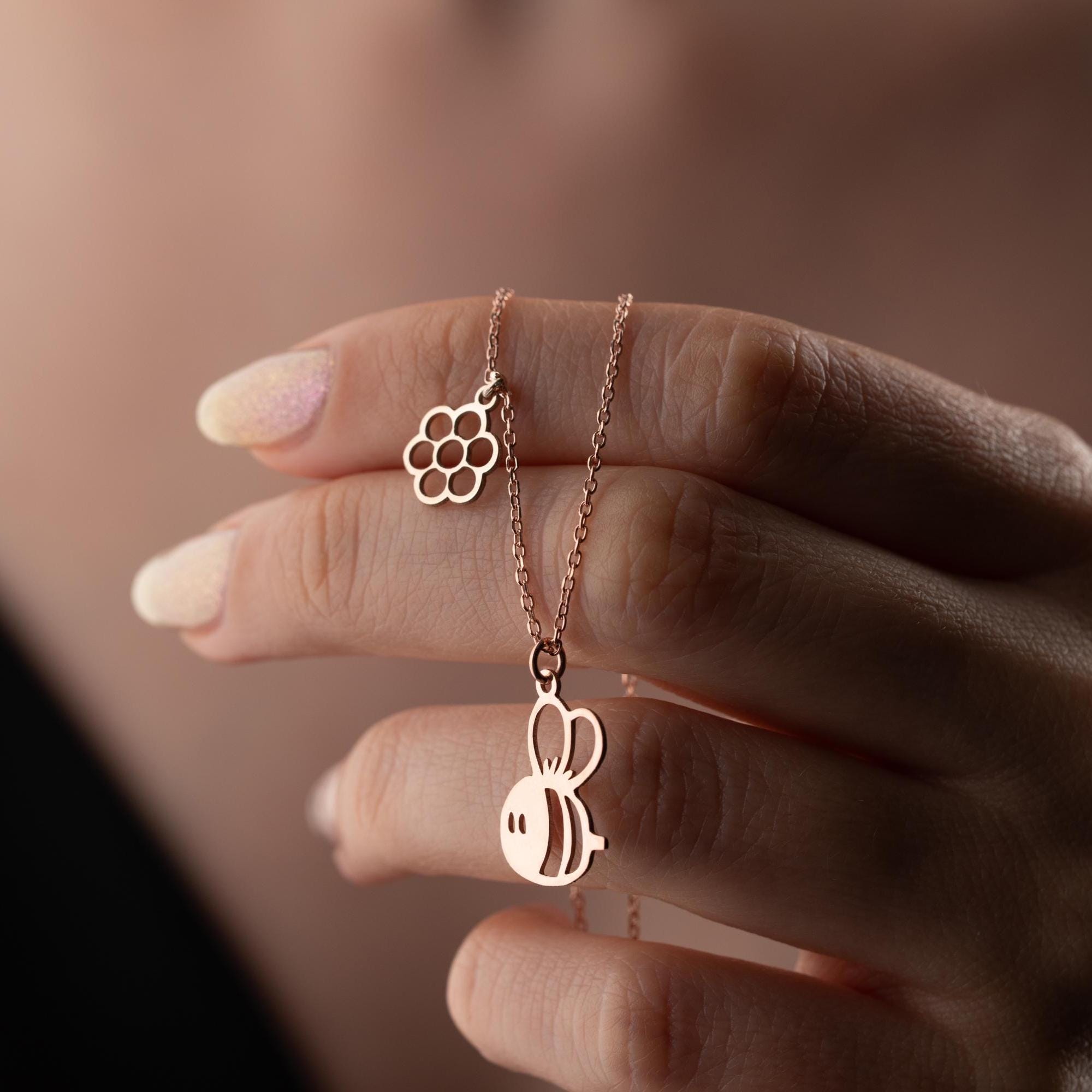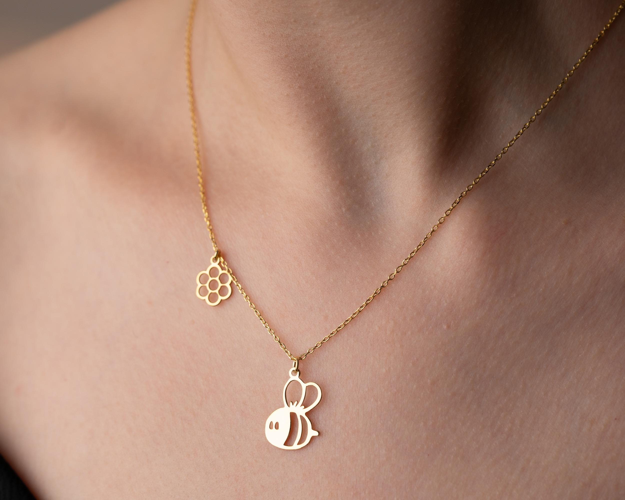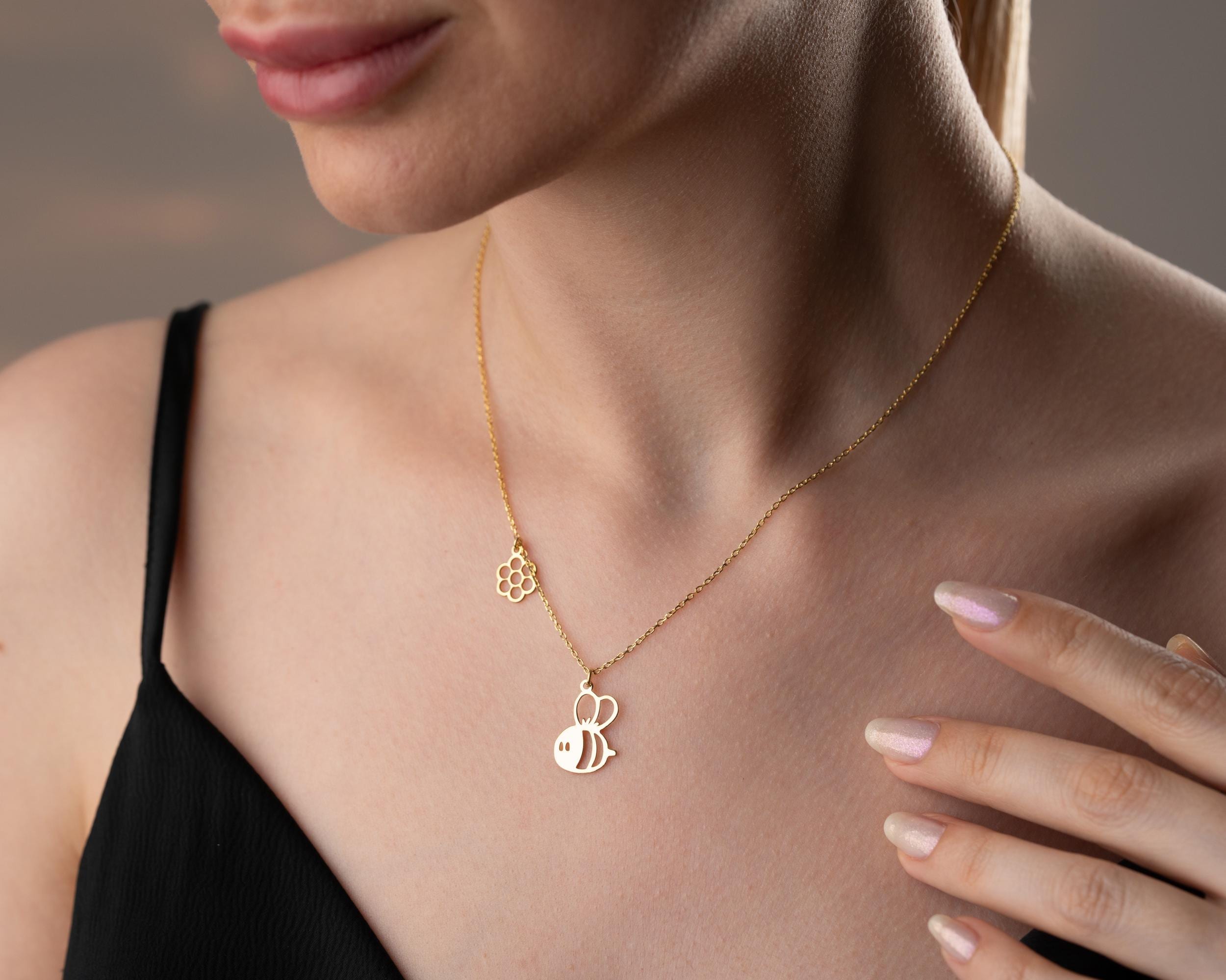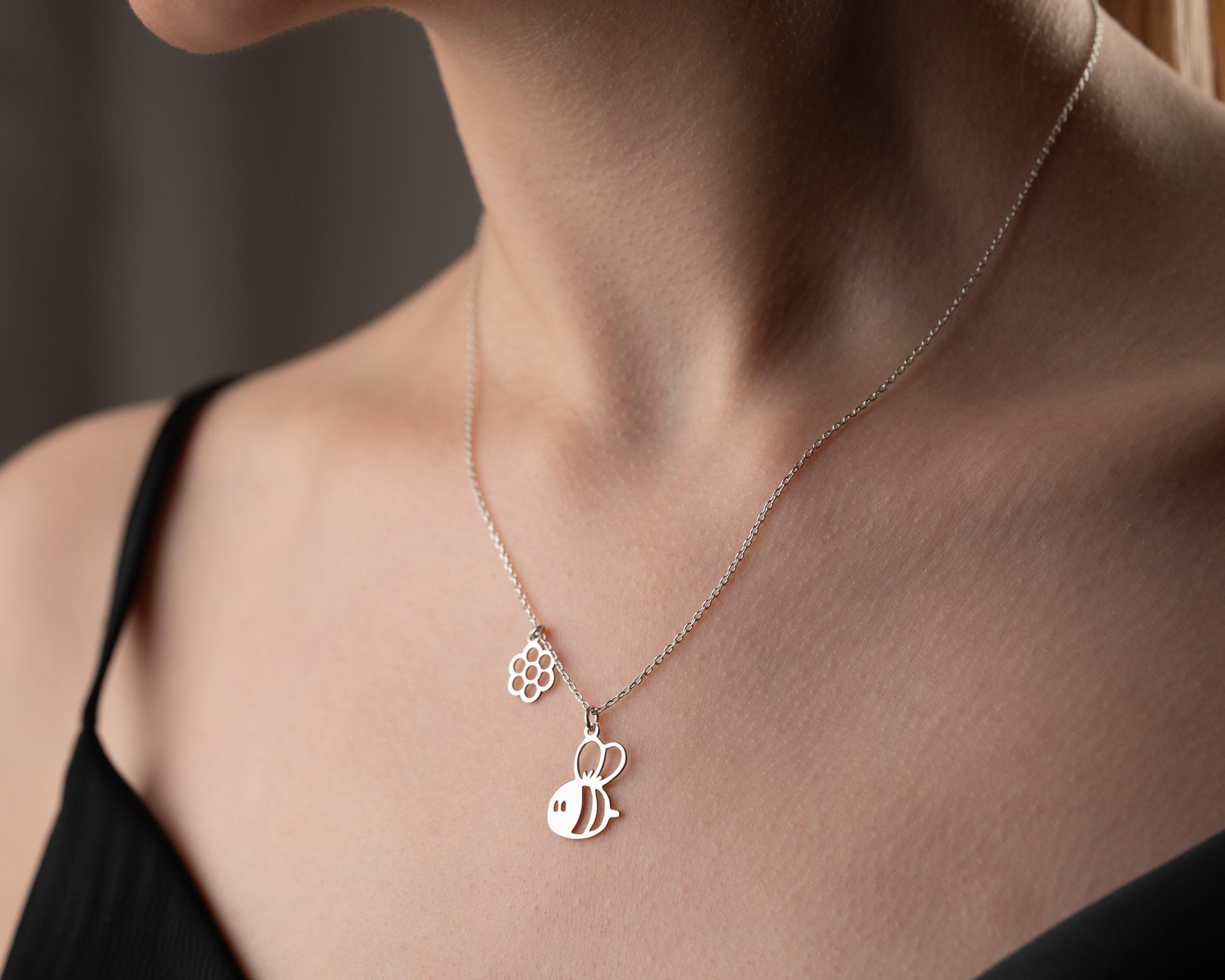 Sterling Silver Honey Bee Necklace: Dainty Handmade Jewelry Gift