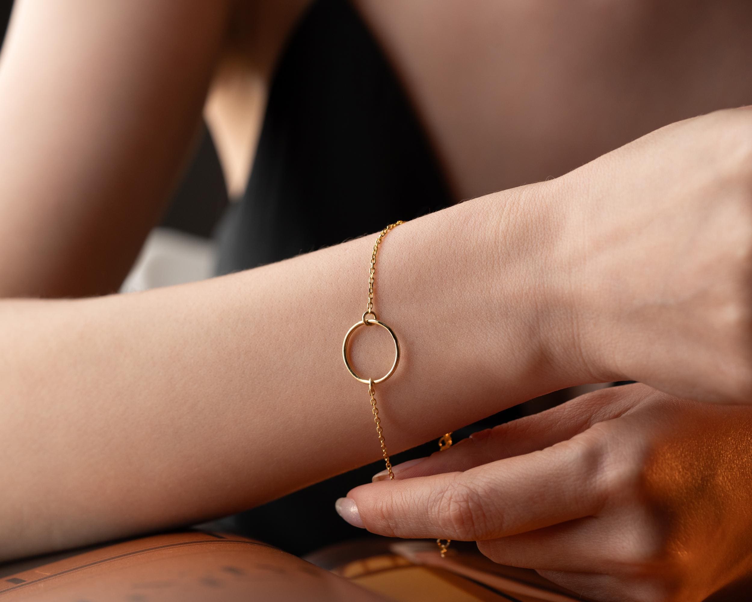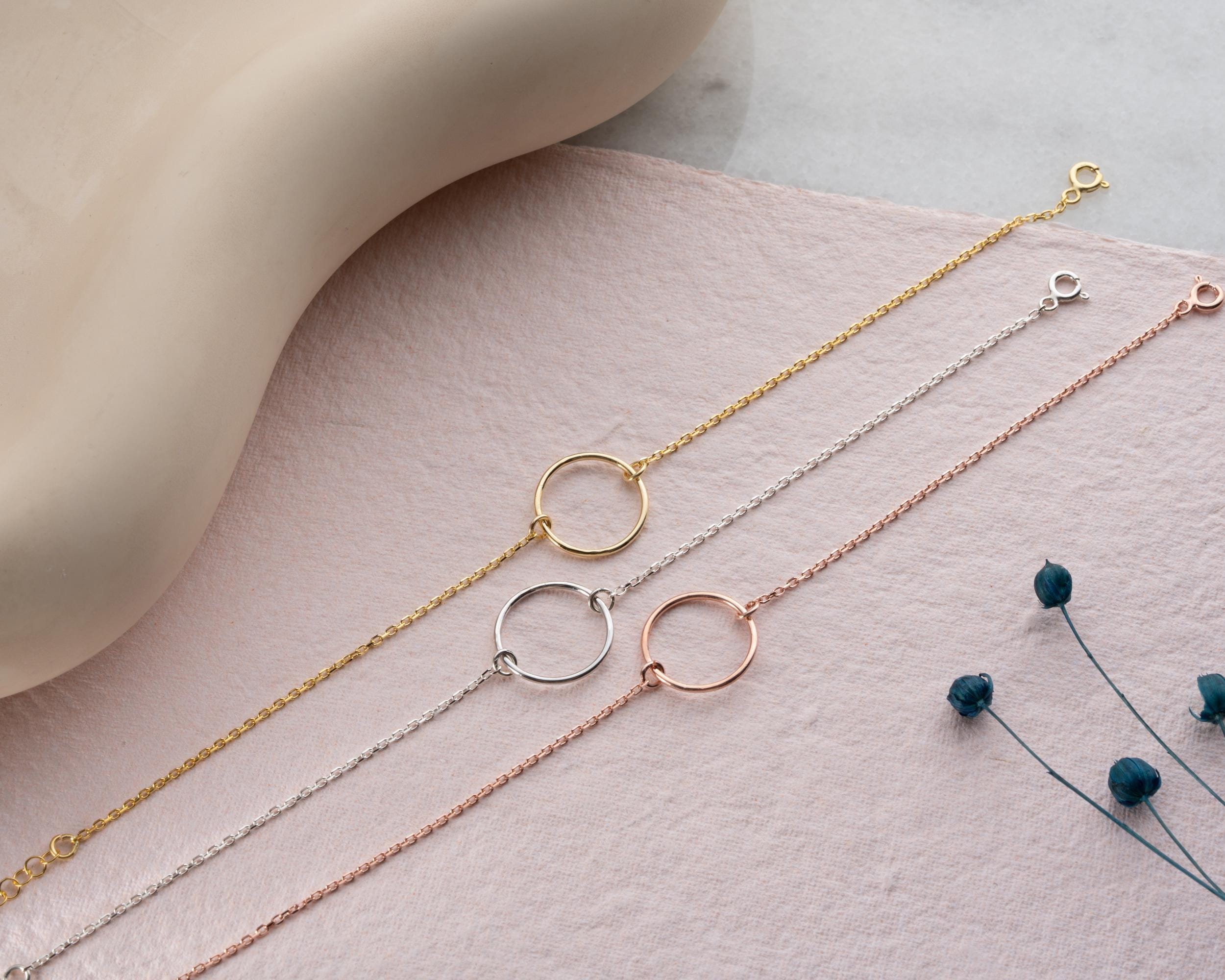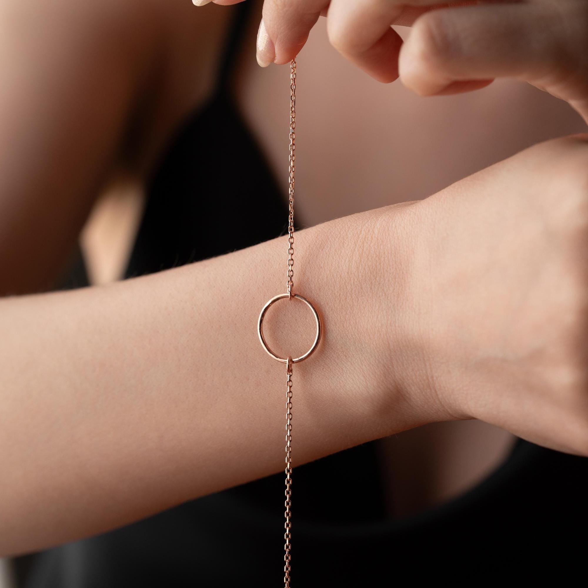 This dainty open circle bracelet blends timeless elegance with modern minimalism. Crafted in your choice of sterling silver, gold, or rose gold, the geometric circle design symbolizes eternity, unity, and wholeness. Perfect for stacking or wearing solo, its lightweight and adjustable chain makes it ideal for everyday wear. Whether you're looking for a subtle accessory or a meaningful gift, this minimalist circle bracelet is a thoughtful addition to any jewelry collection.