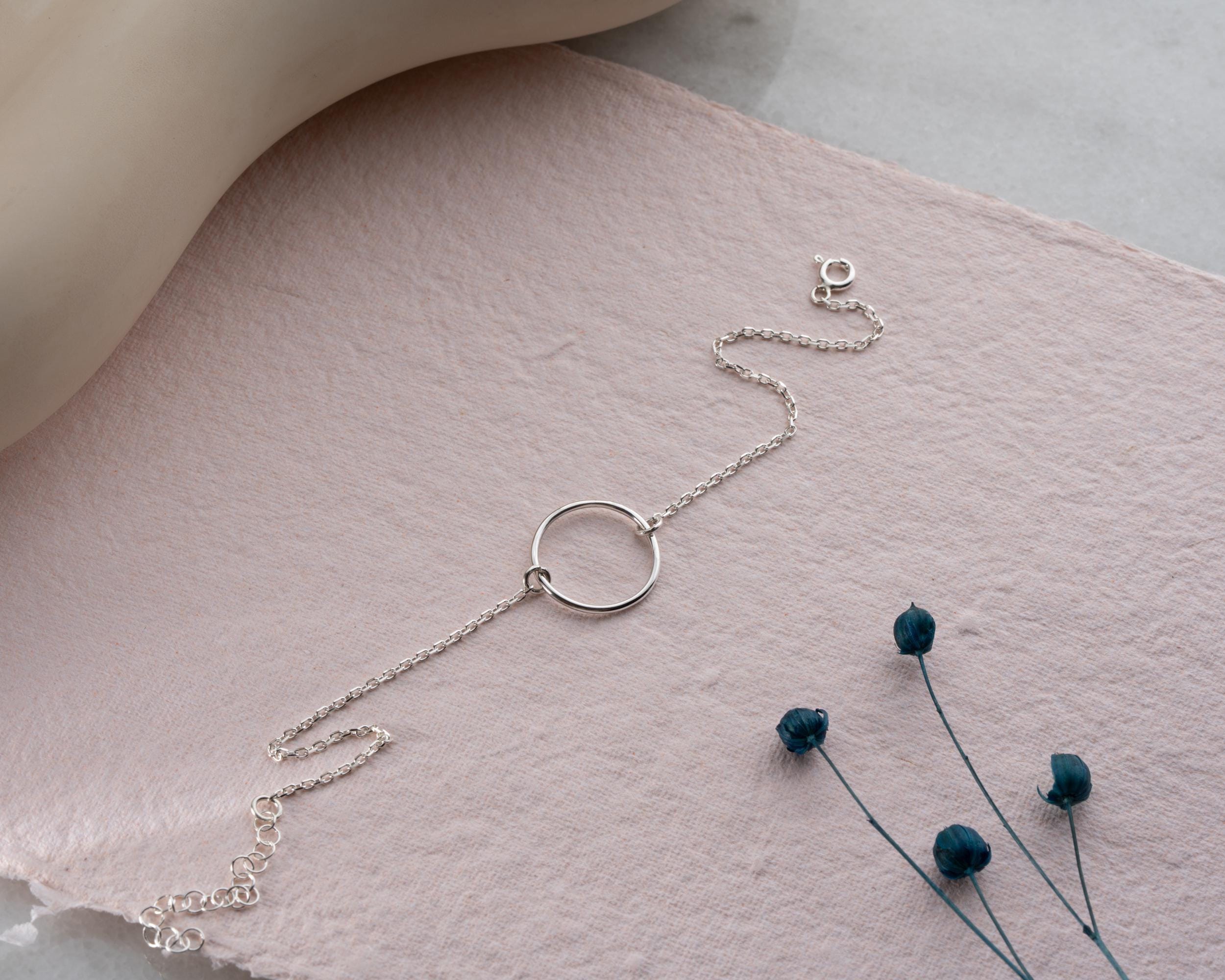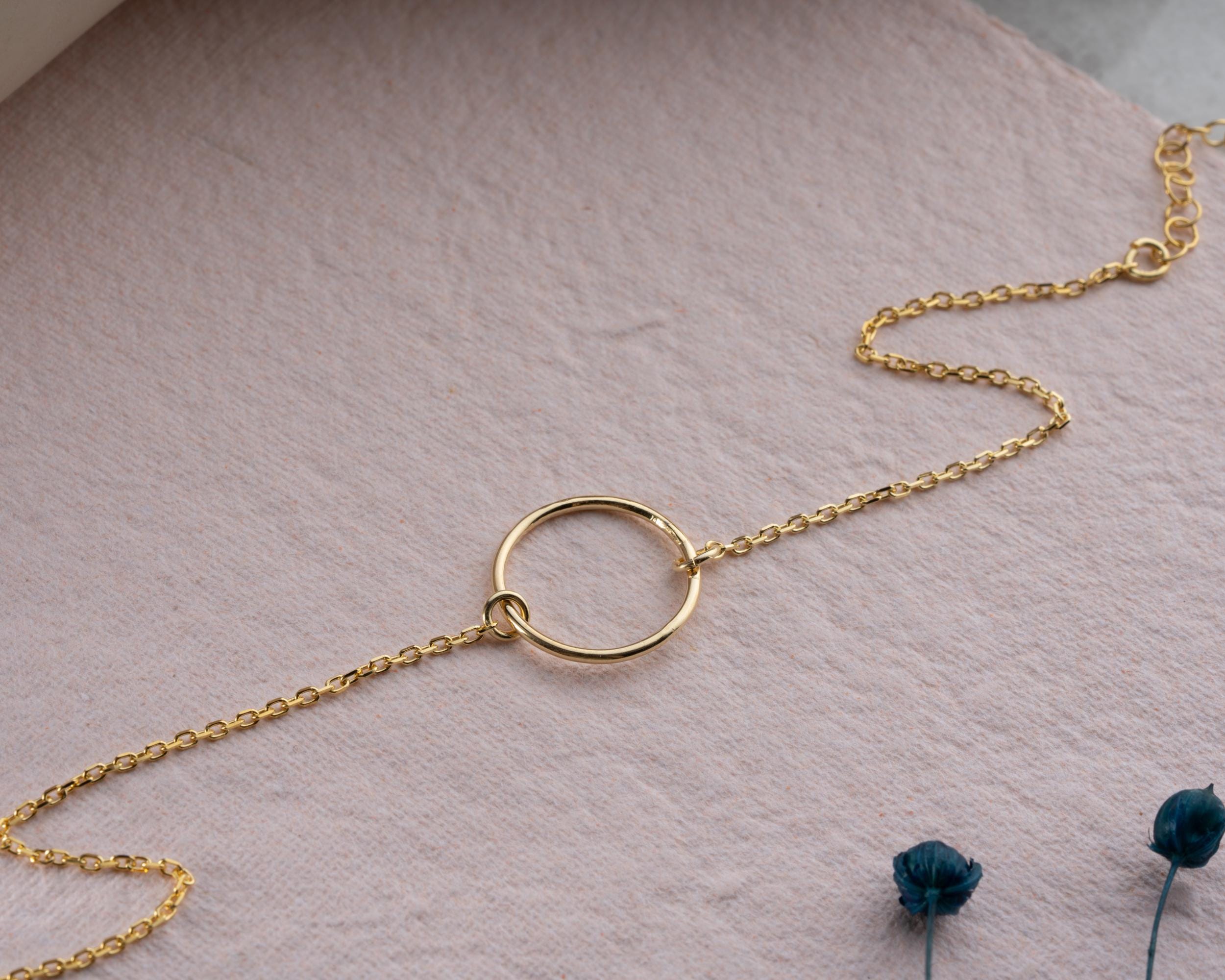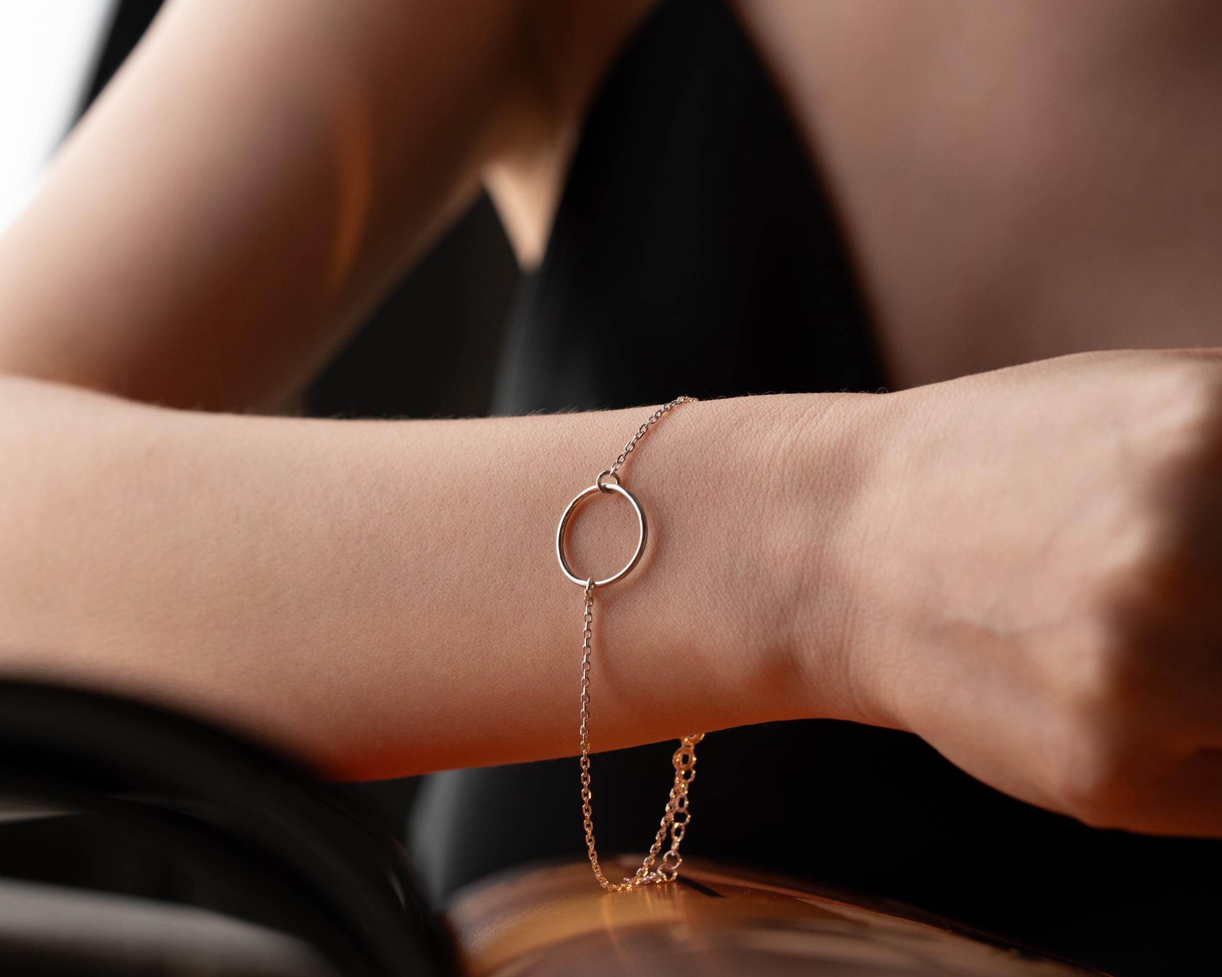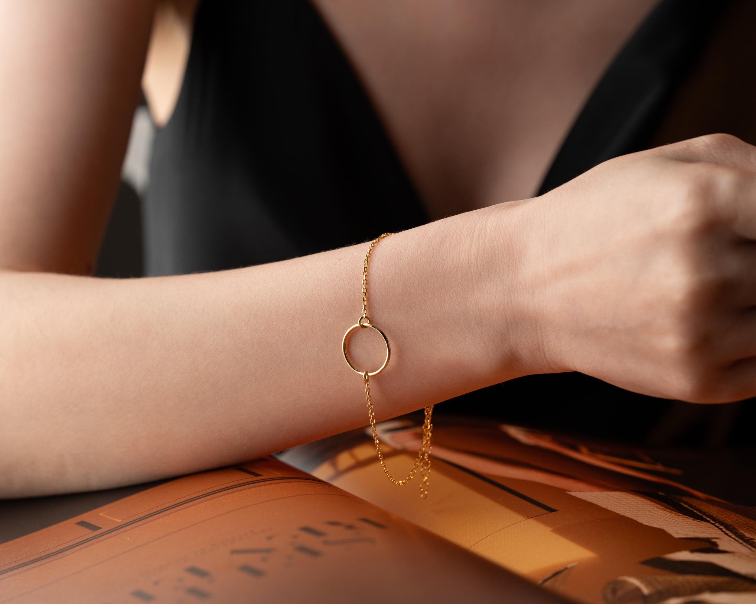 This dainty open circle bracelet blends timeless elegance with modern minimalism. Crafted in your choice of sterling silver, gold, or rose gold, the geometric circle design symbolizes eternity, unity, and wholeness. Perfect for stacking or wearing solo, its lightweight and adjustable chain makes it ideal for everyday wear. Whether you're looking for a subtle accessory or a meaningful gift, this minimalist circle bracelet is a thoughtful addition to any jewelry collection.