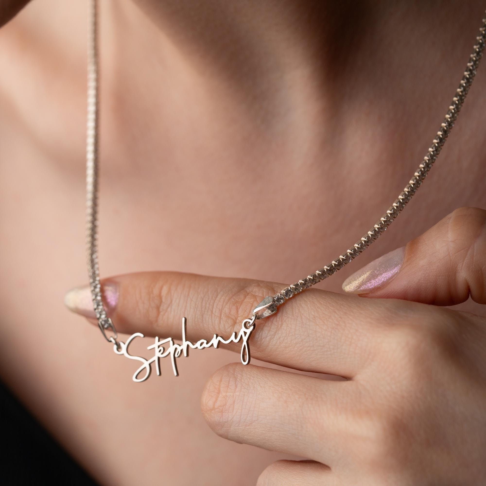 This is a Physical Item. Each necklace is custom-made to order and handcrafted from high-quality Sterling Silver or Gold Plated material (please specify your desired length and material at checkout). Due to the personalized nature of this item, please allow 3-5 business days for creation before shipping. All orders are sent with tracked shipping for peace of mind. Please double-check the spelling of the custom name before placing your order, as personalized items are non-refundable.