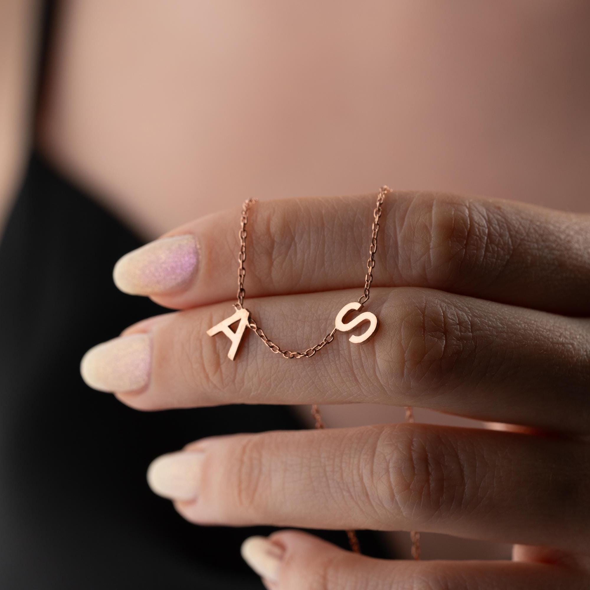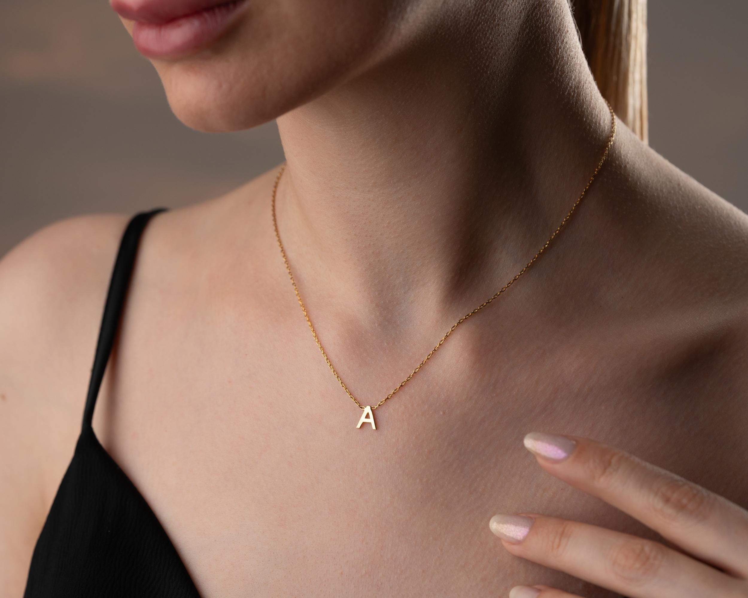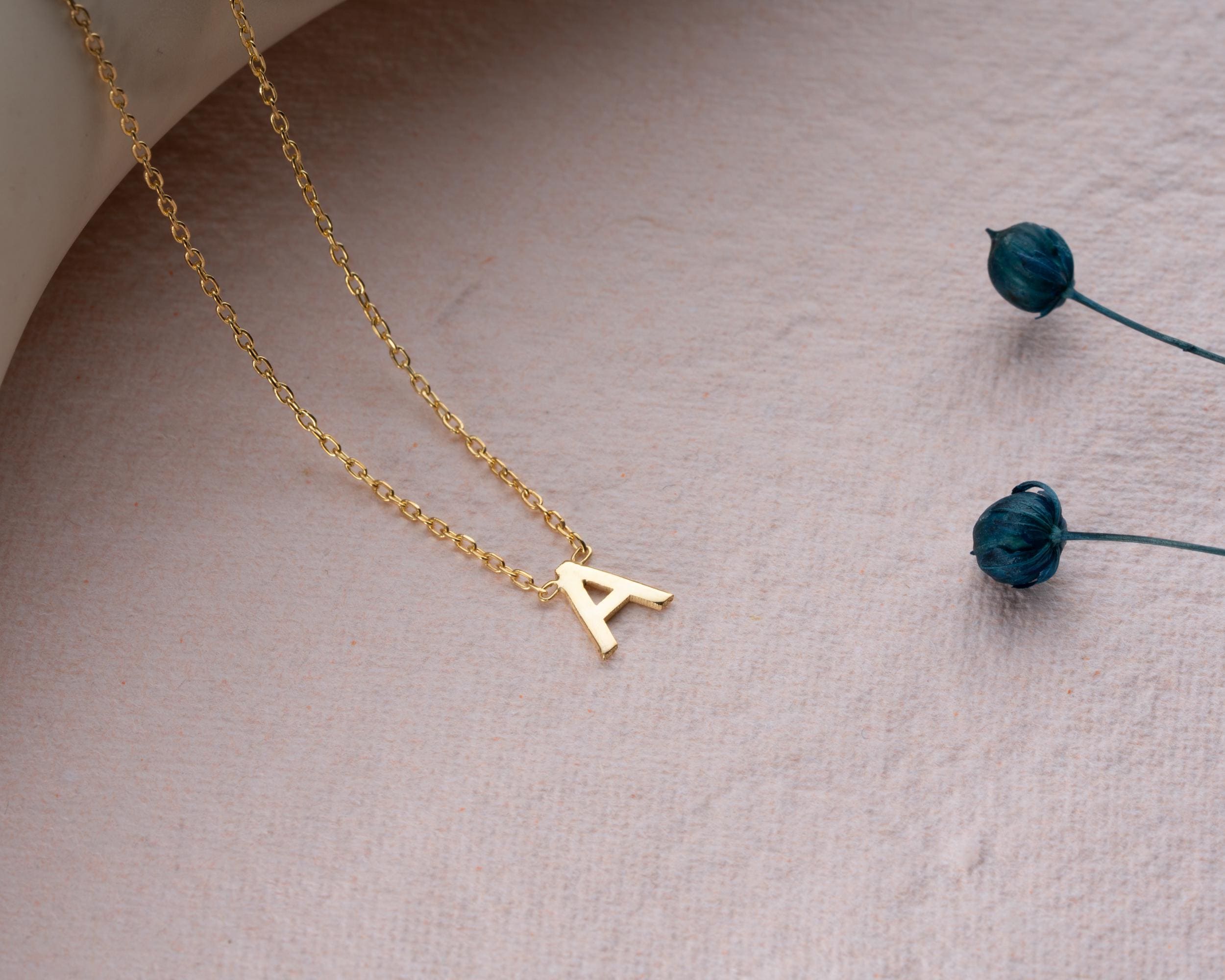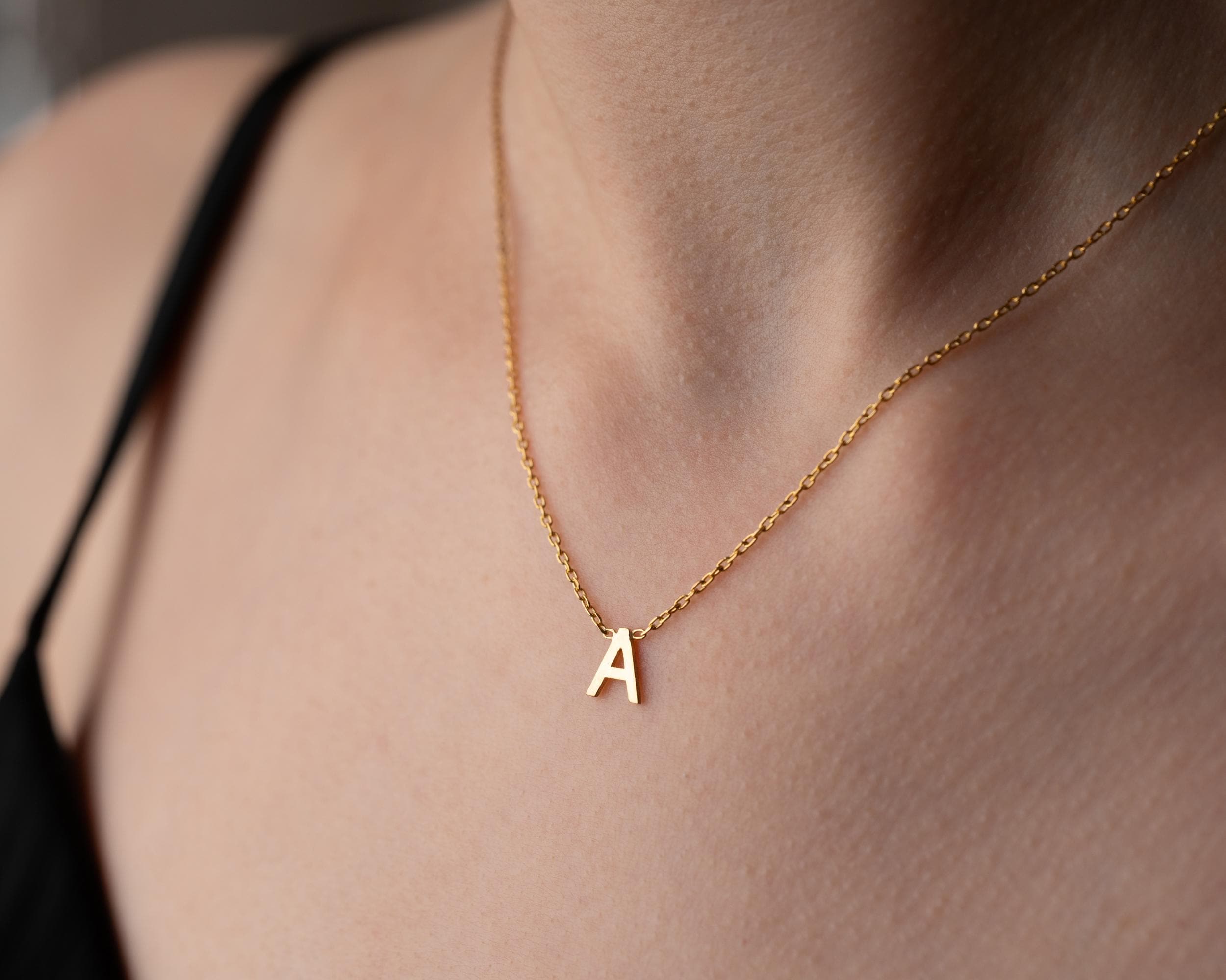 Personalized Gold Initial Necklace: Custom Letter Charm, Valentine's Gift