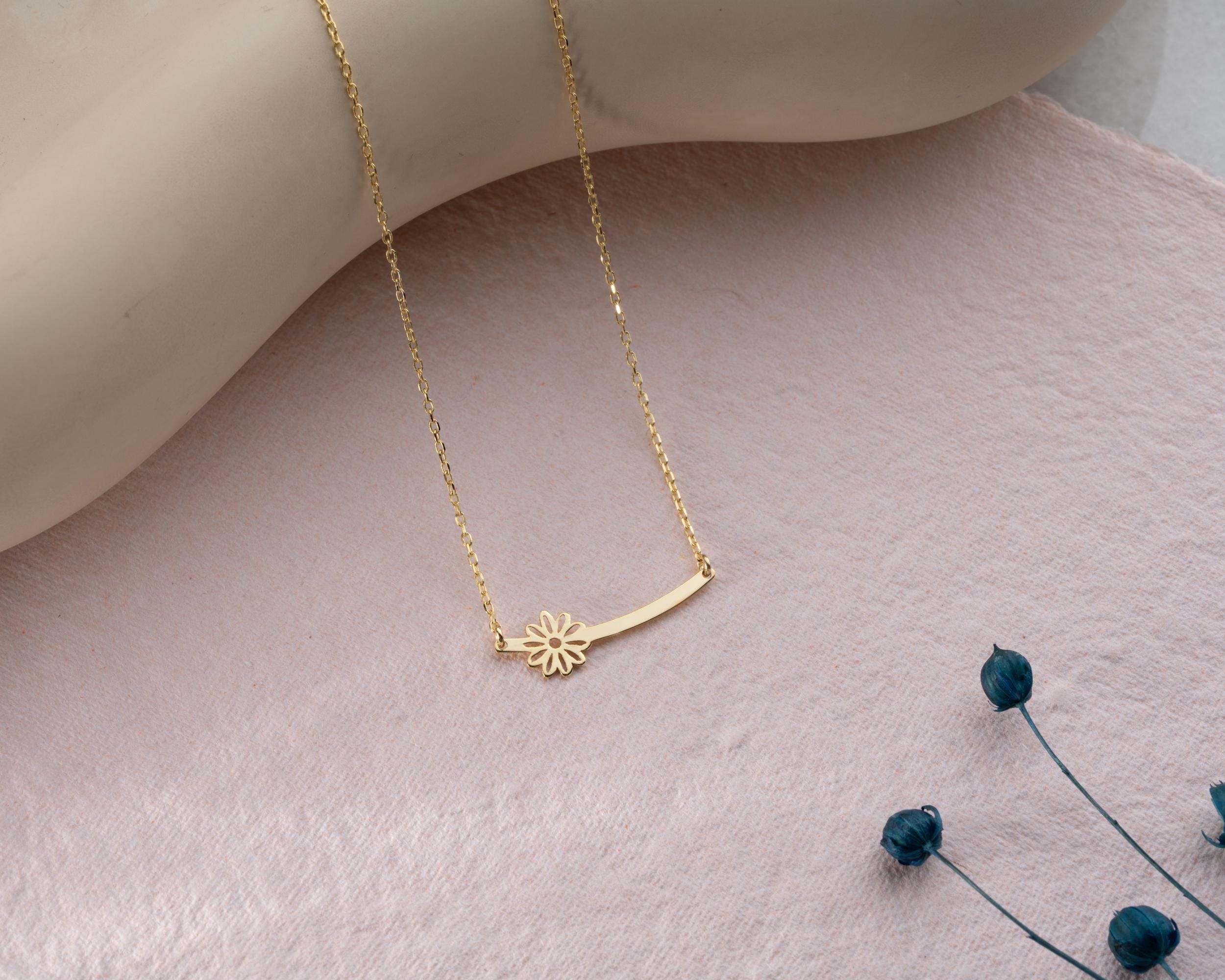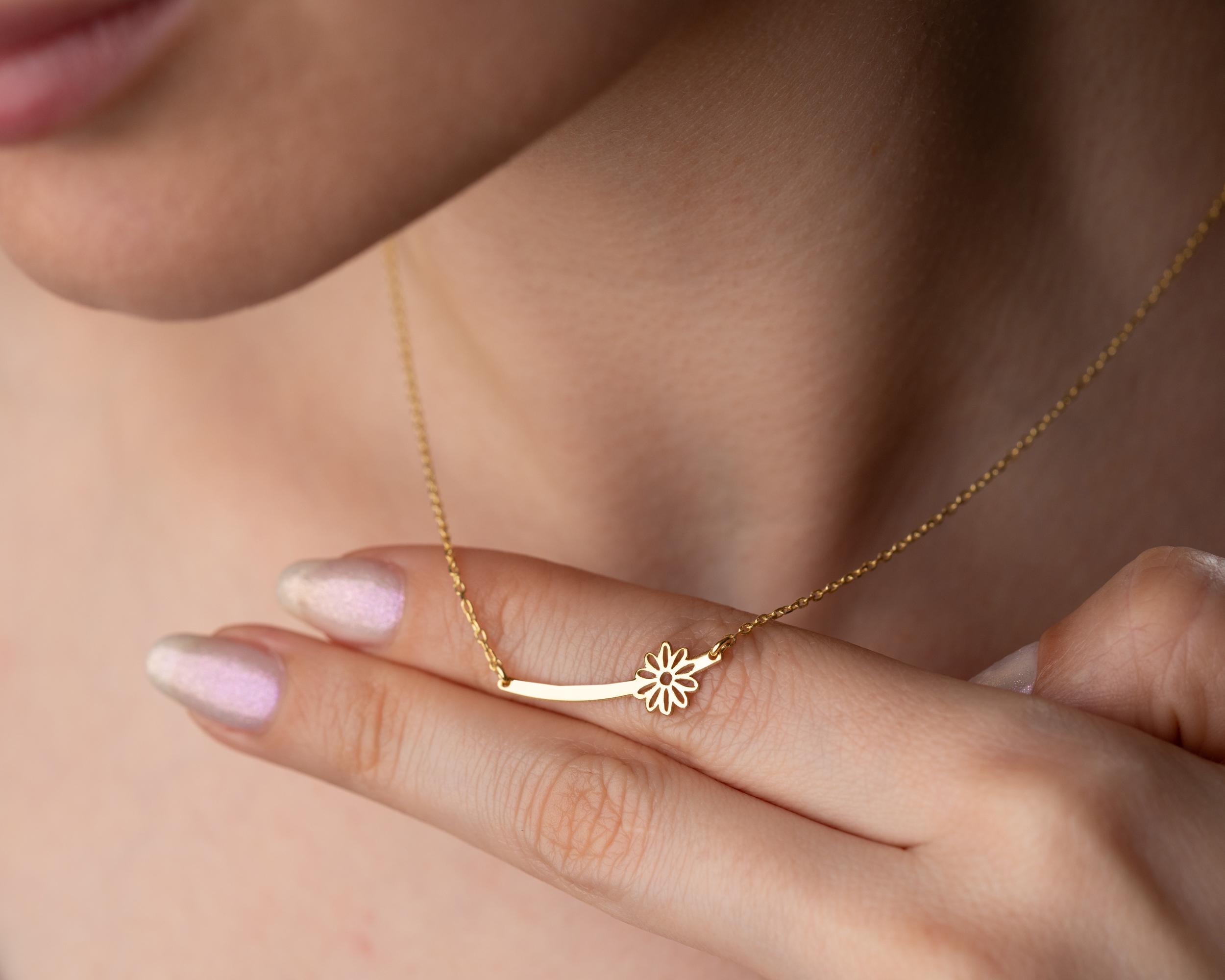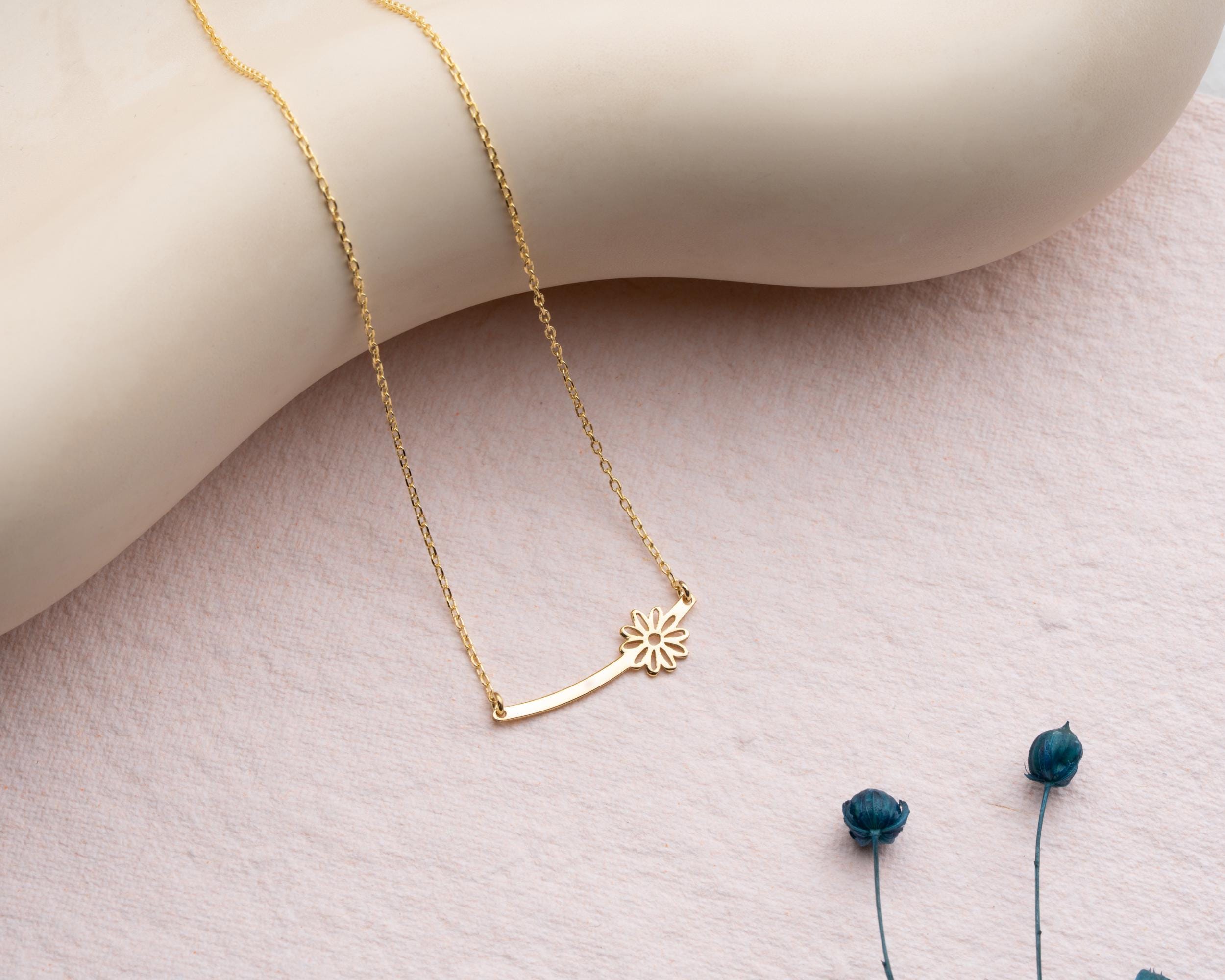 Personalized Birth Flower Bar Necklace: Sterling Silver Floral Pendant, Mother's Gift