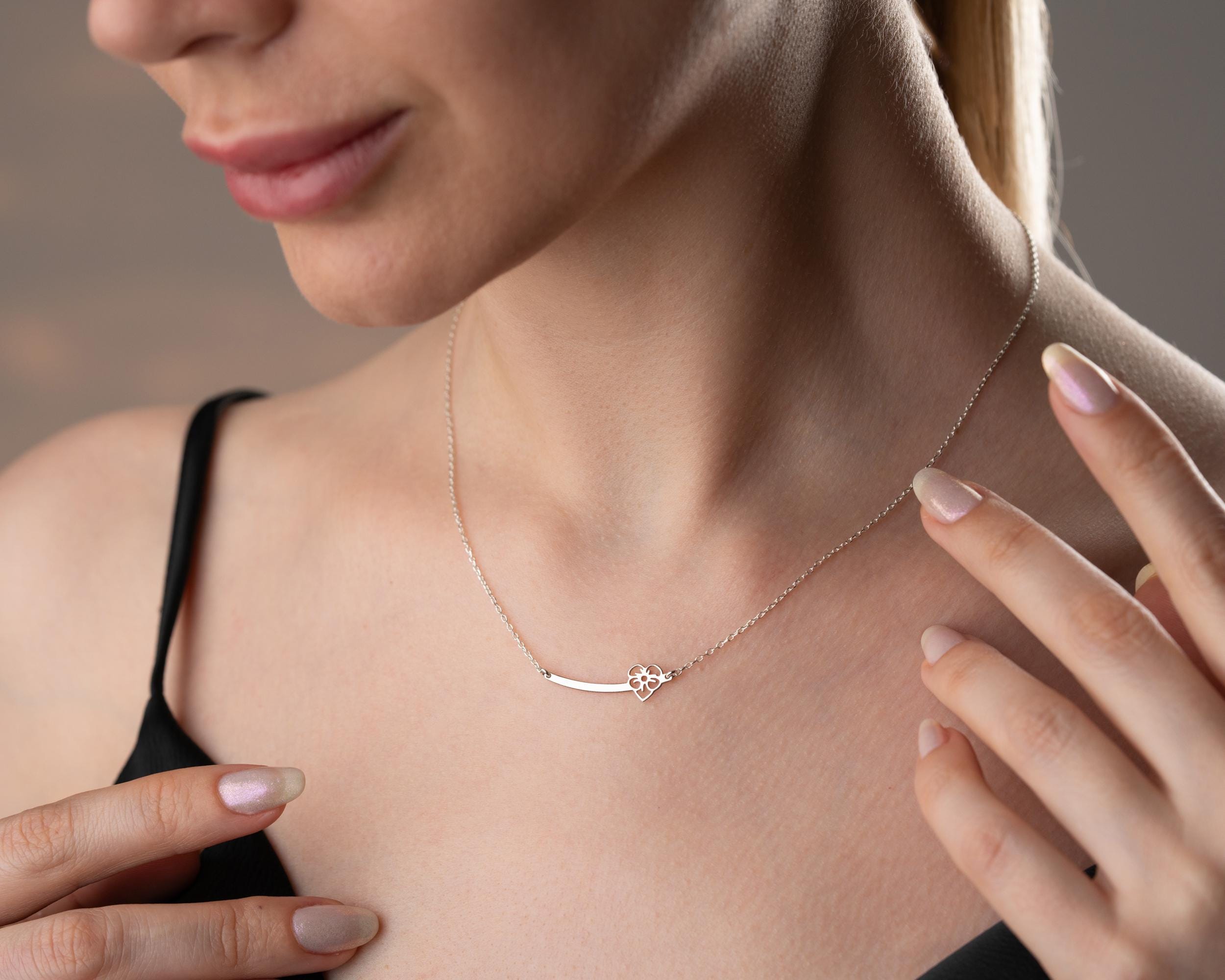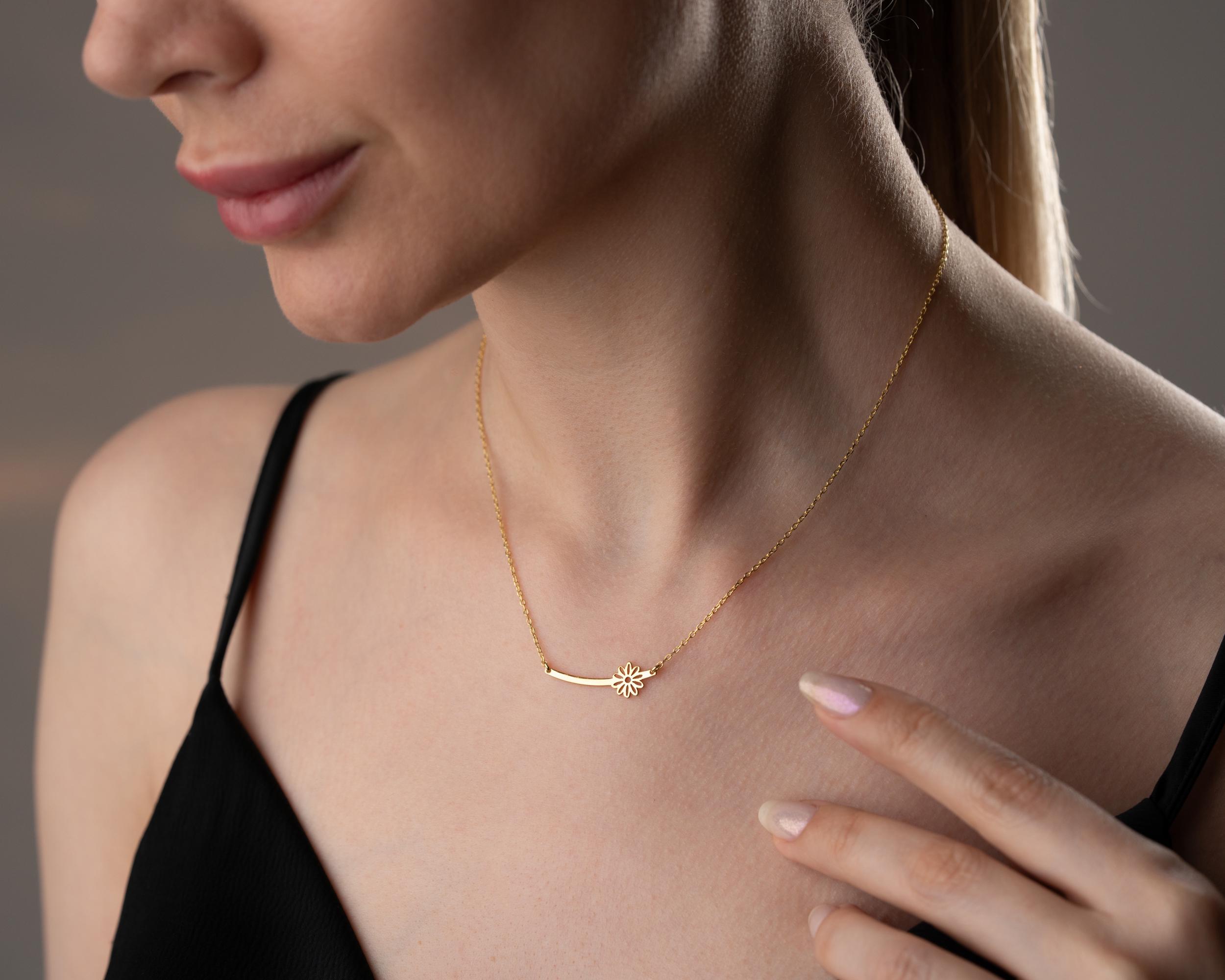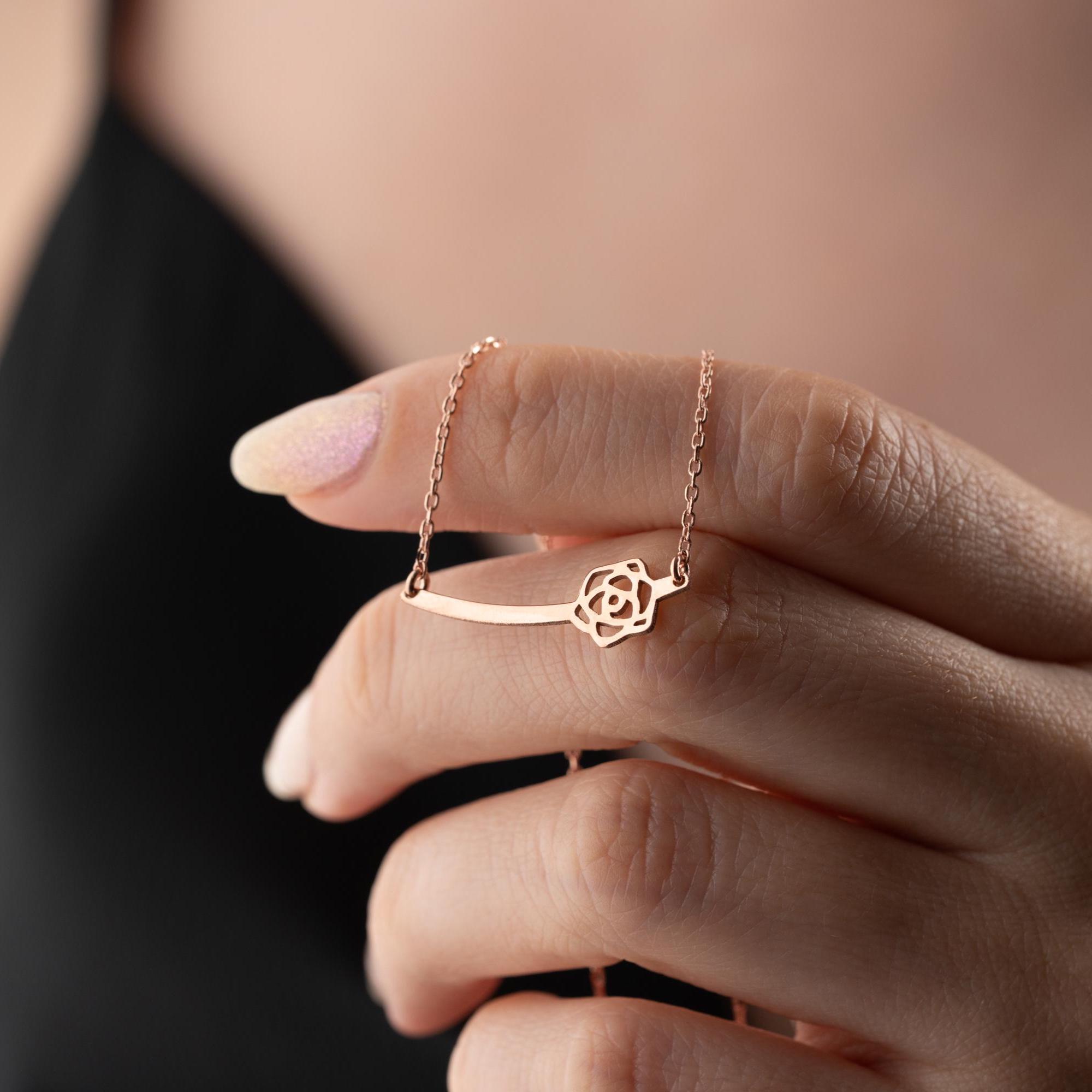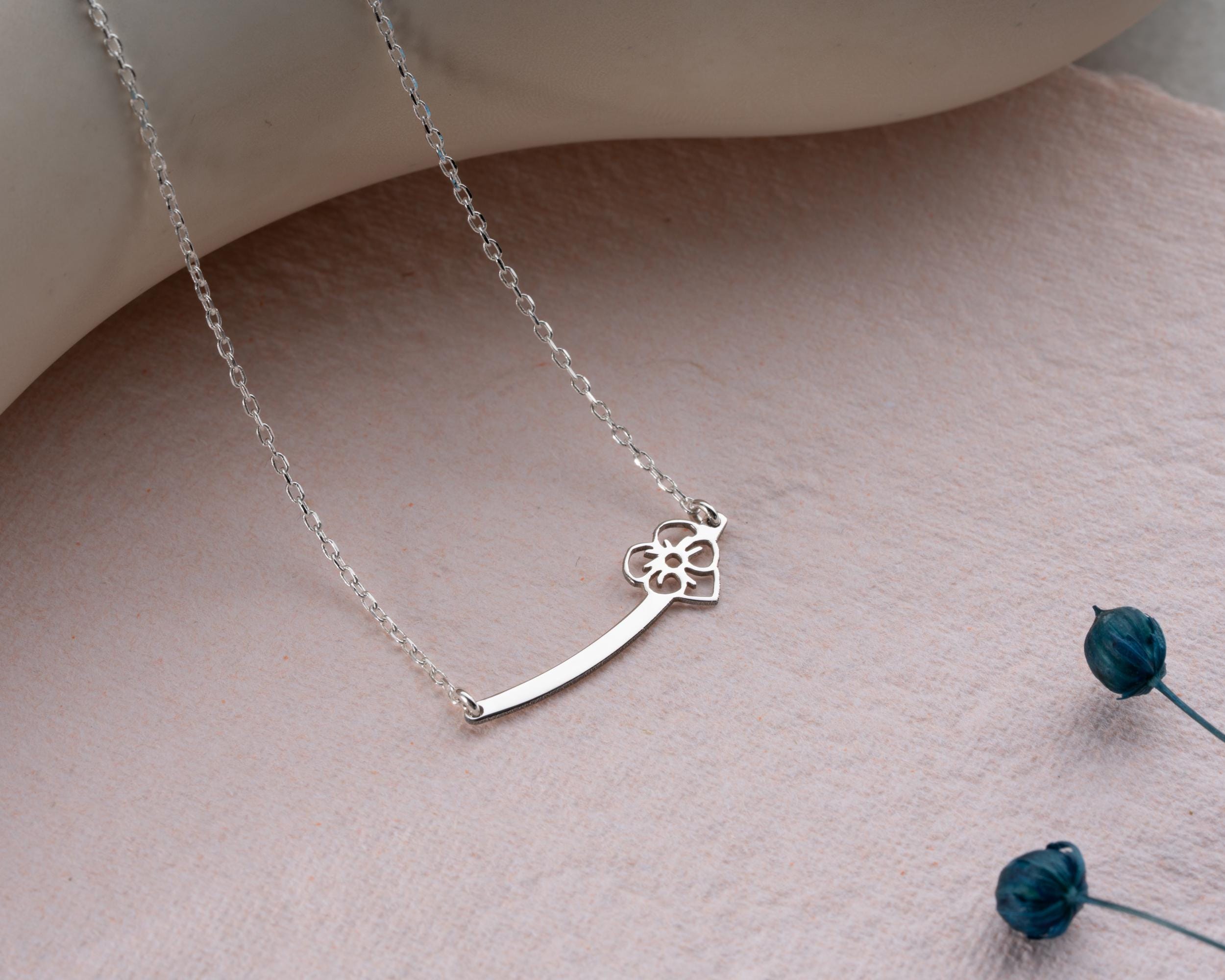 Personalized Birth Flower Bar Necklace: Sterling Silver Floral Pendant, Mother's Gift
