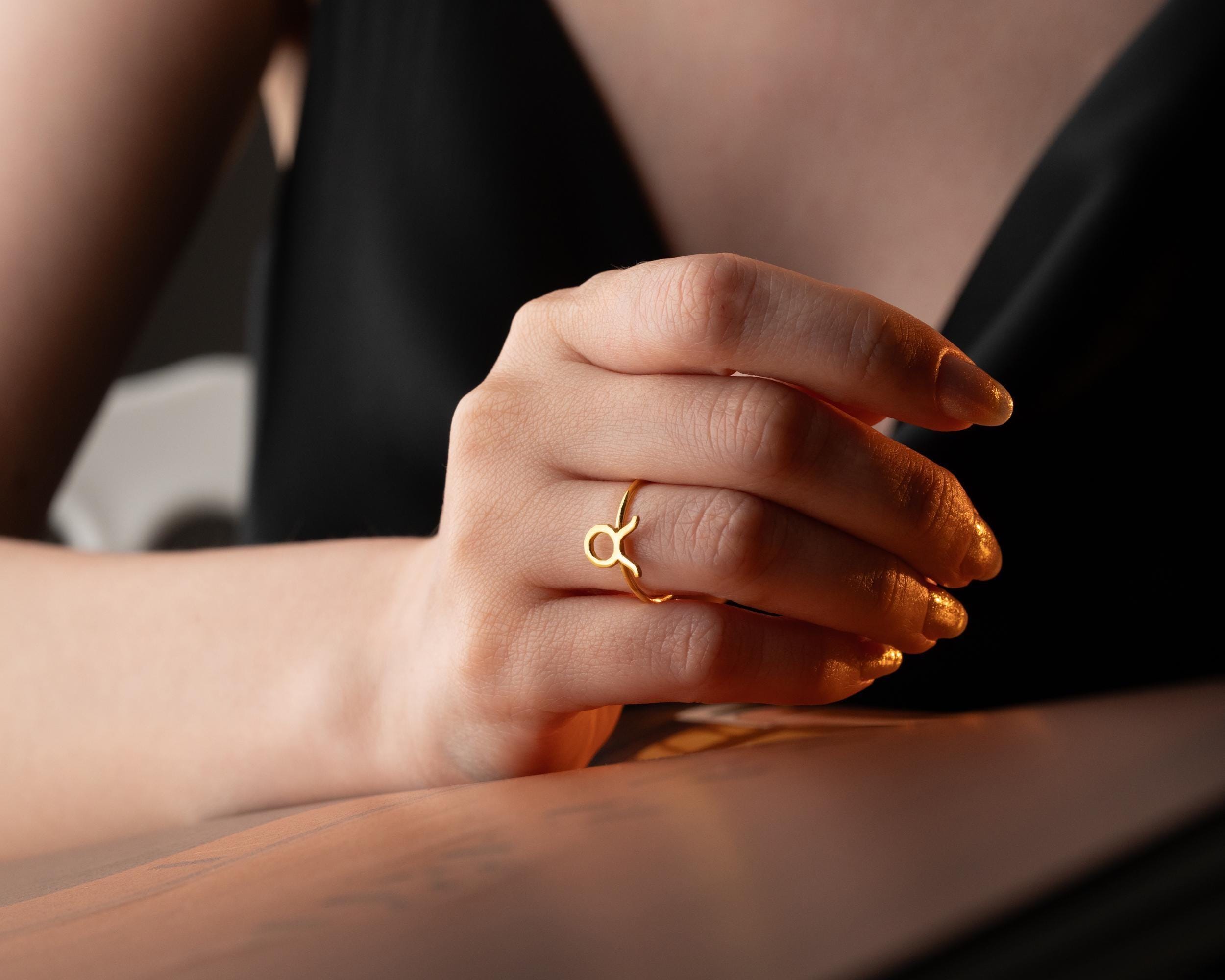8K Solid Gold Zodiac Ring: Personalized Astrology Sign Jewelry