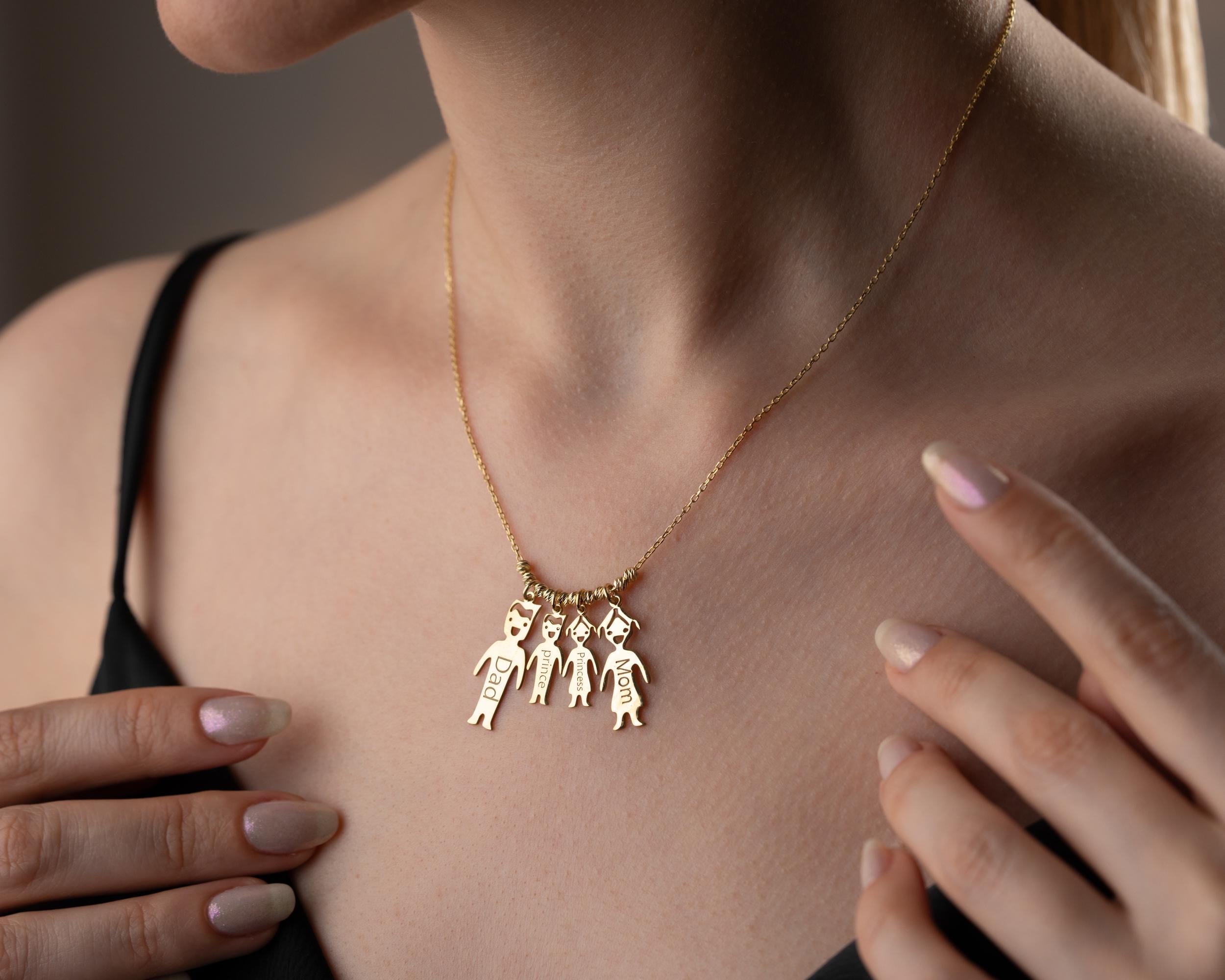 Celebrate motherhood with this Custom Mother Necklace featuring adorable little boy and girl charms, each personalized with a name or meaningful word. Crafted with care, this necklace is a heartfelt way to keep children or grandchildren close to the heart. Choose from charms to represent your loved ones, making it a unique piece for Mother’s Day, Christmas, birthdays, or just because. Perfect for moms, grandmas, or nanas, this sentimental keepsake blends elegance with love — a gift she will treasure forever.