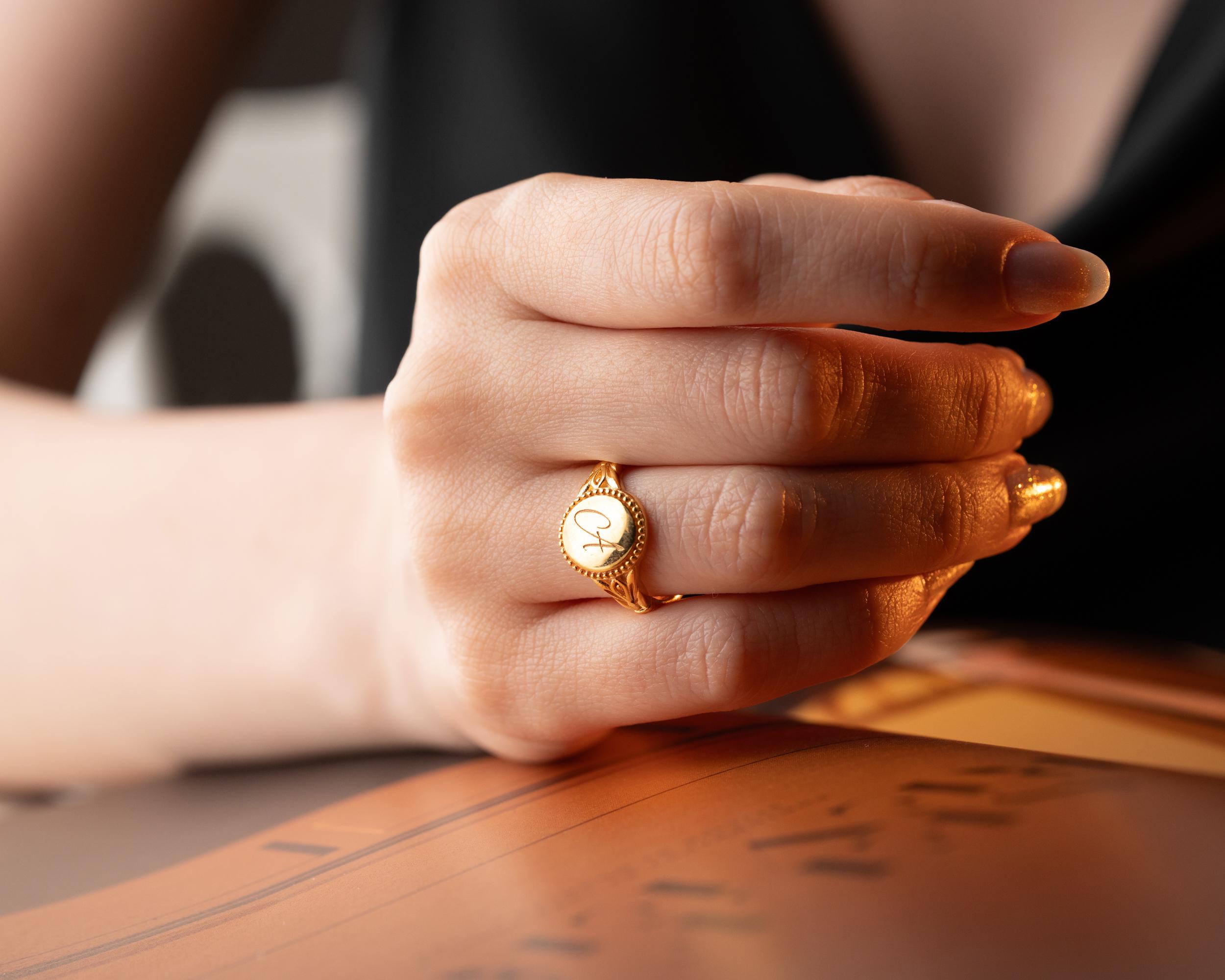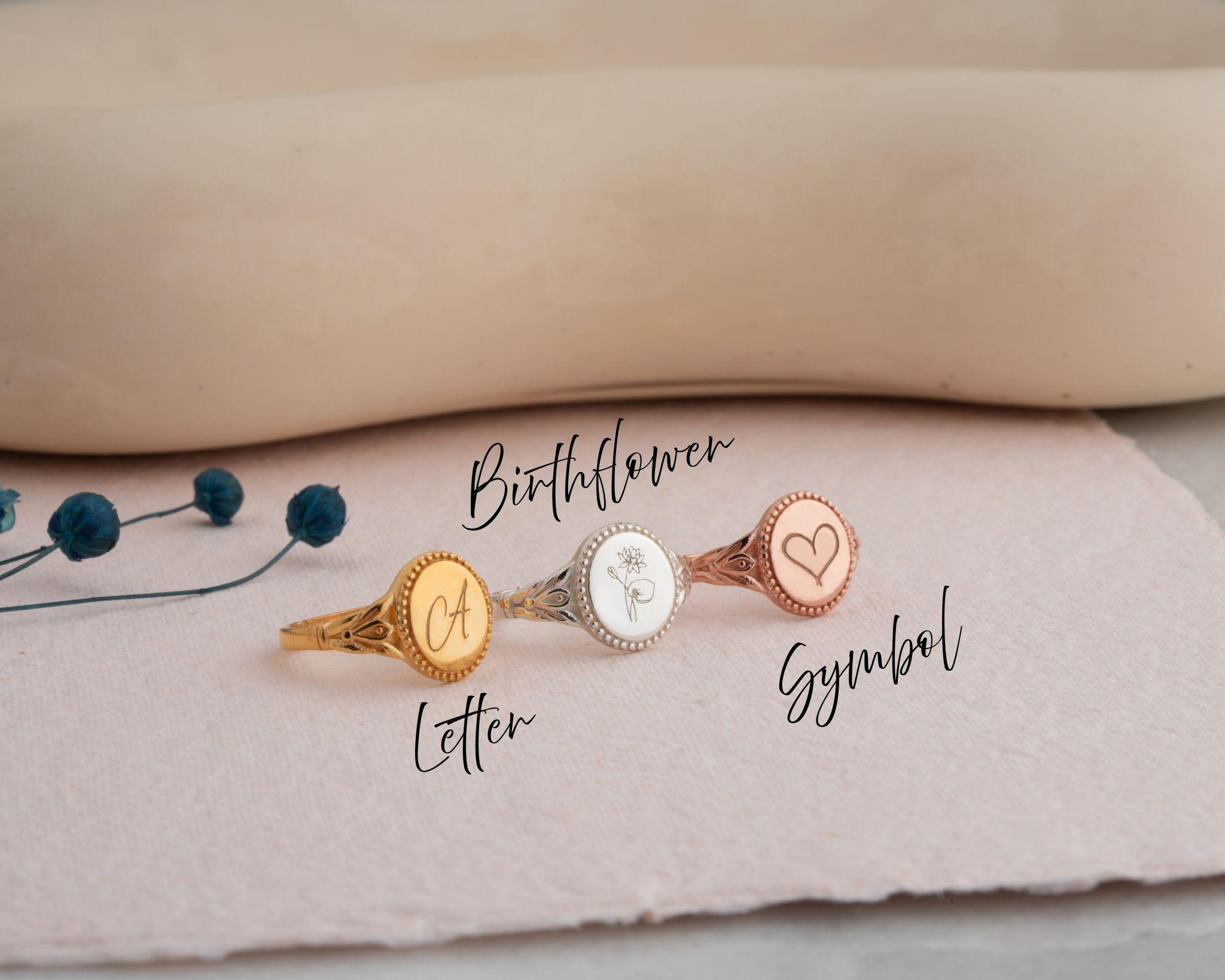 This Personalized Initial Ring is the perfect blend of elegance, meaning, and timeless style. Designed in a classic vintage signet style, this ring can be customized with any letter of your choice, making it a truly unique accessory that reflects your story. Crafted with care from 925 sterling silver or high-quality gold plating, it is durable enough for everyday wear while still maintaining a delicate and dainty look. Its smooth and comfortable fit makes it an ideal piece of jewelry to keep close at all times.