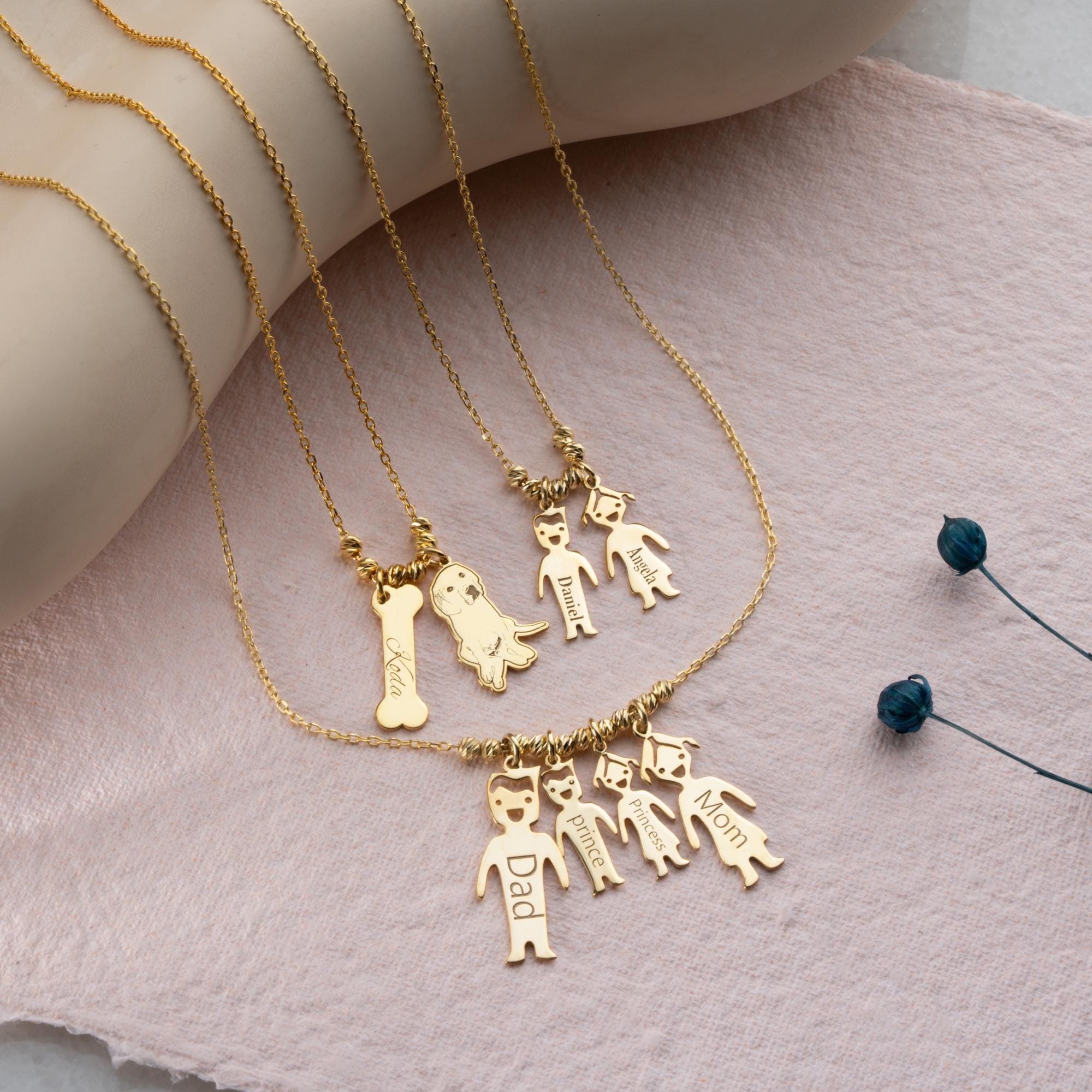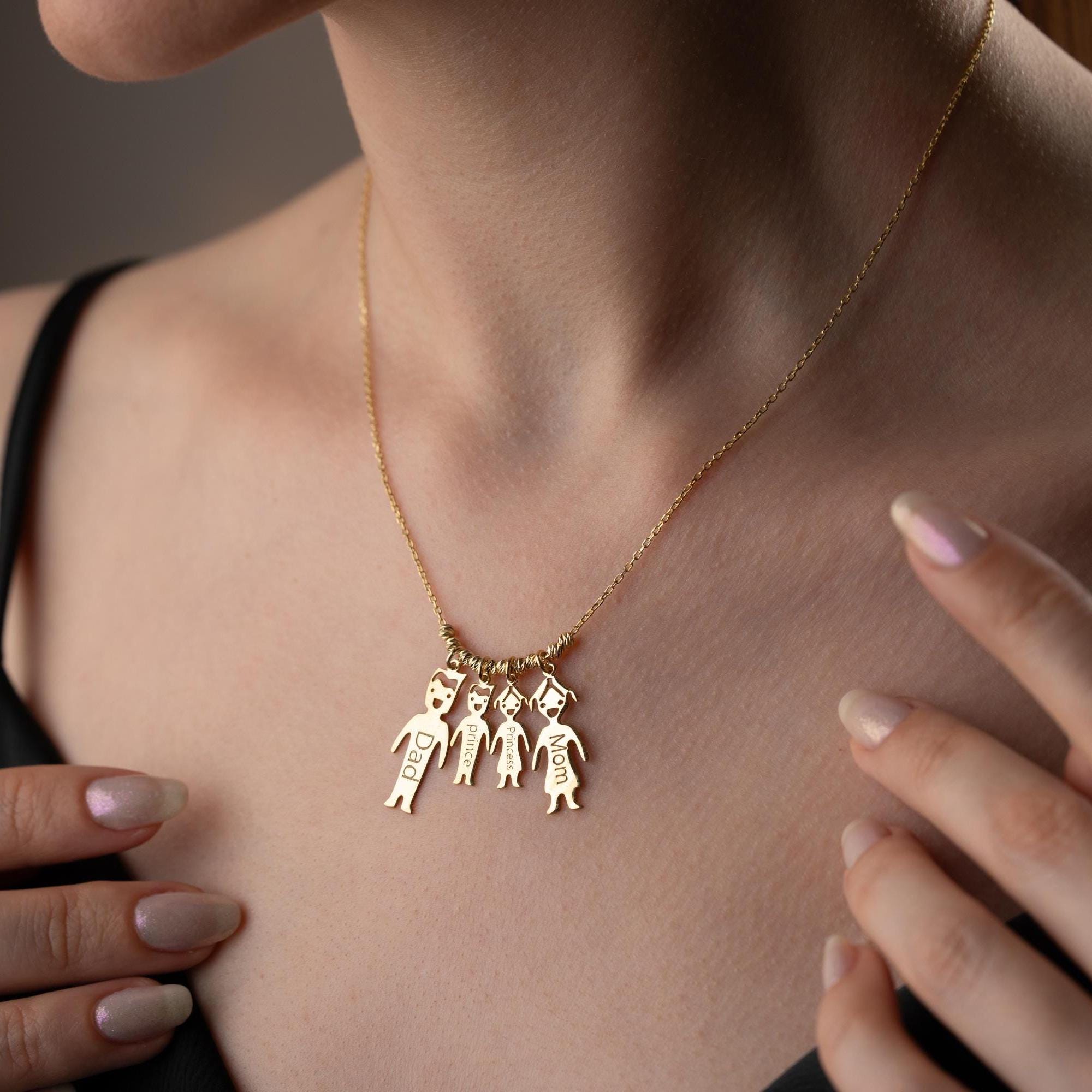 Custom Family Name Necklace with Boy and Girl Charm : Mother Necklace Family Children Pendant Necklace,