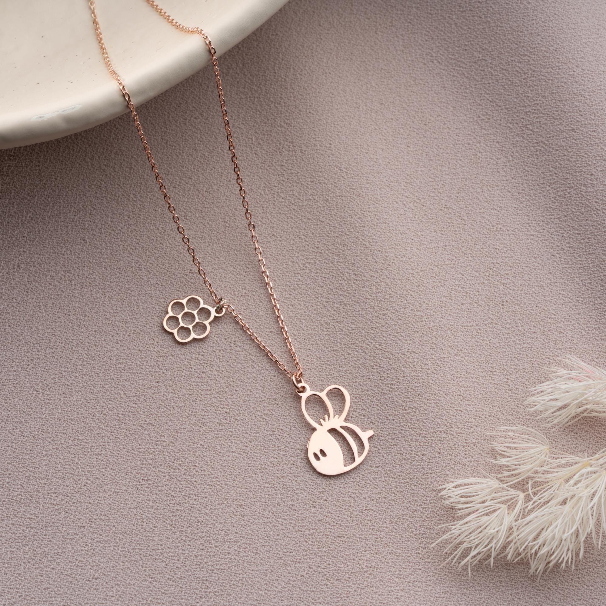 Honey Bee Necklace Gift Cute Bee Necklace Silver Handmade Jewelry Gift for Mom Honeycomb Necklace with Dainty Bee Necklace Keeper Gift Women