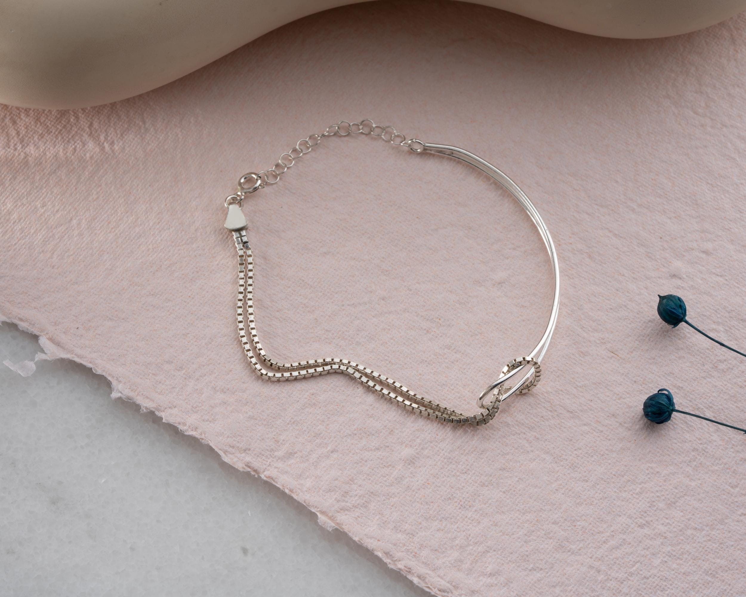 This Vintage Double Layer Bracelet combines elegance with unique craftsmanship. Designed with a half box chain and half wire chain, this bracelet creates a distinctive look that stands out from classic chain designs. Handcrafted with high-quality 925 sterling silver, it is both dainty and durable, making it perfect for daily wear or special occasions.