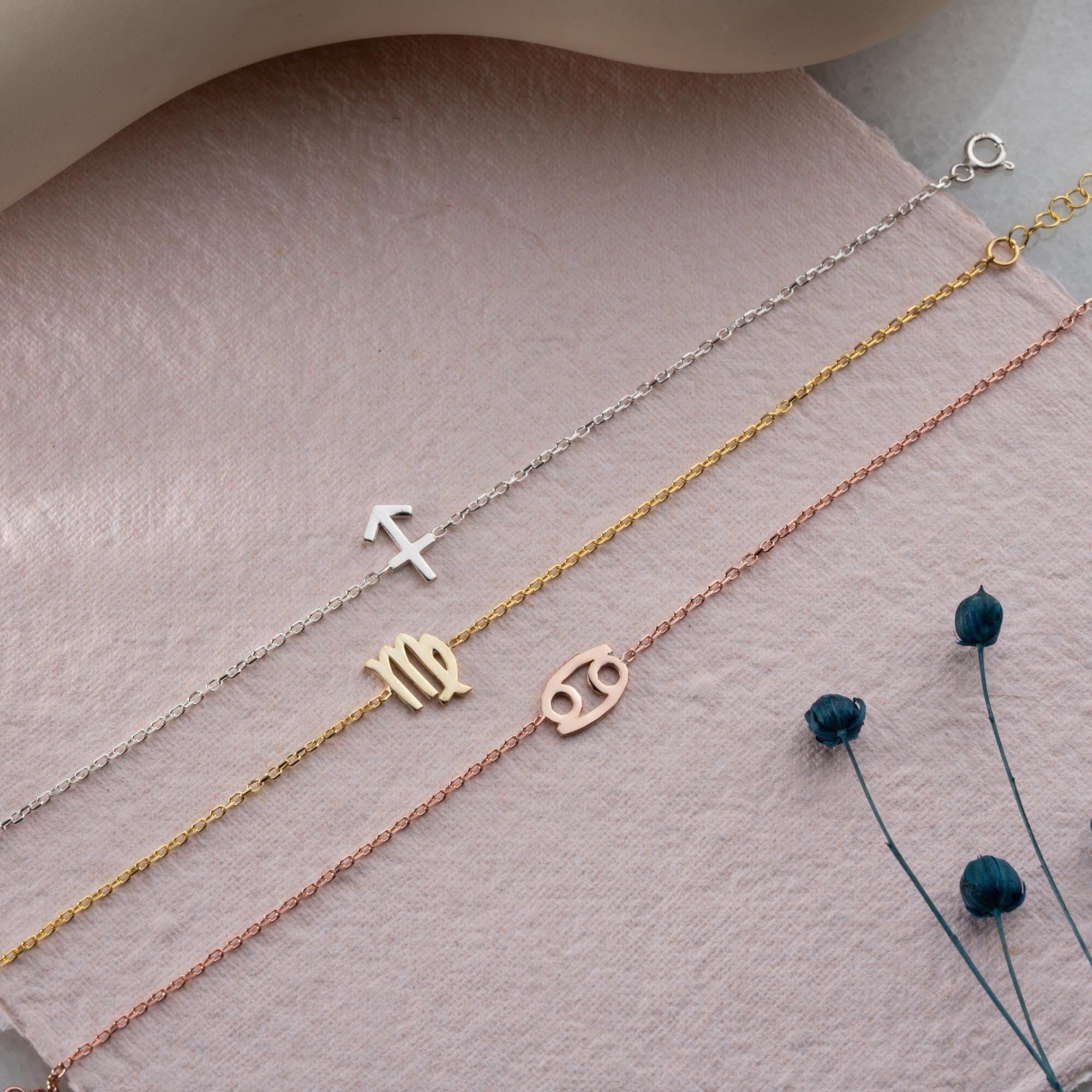 Discover the perfect blend of elegance and personal meaning with our Zodiac Shape Bracelet collection. Each bracelet features delicate zodiac sign charms, crafted in sterling silver or gold, making it an ideal gift for birthdays, anniversaries, or special milestones. Whether you're celebrating your star sign or sharing a bond with a loved one, these custom-made astrology bracelets offer a dainty, timeless touch. A thoughtful and unique gift for her or mom.