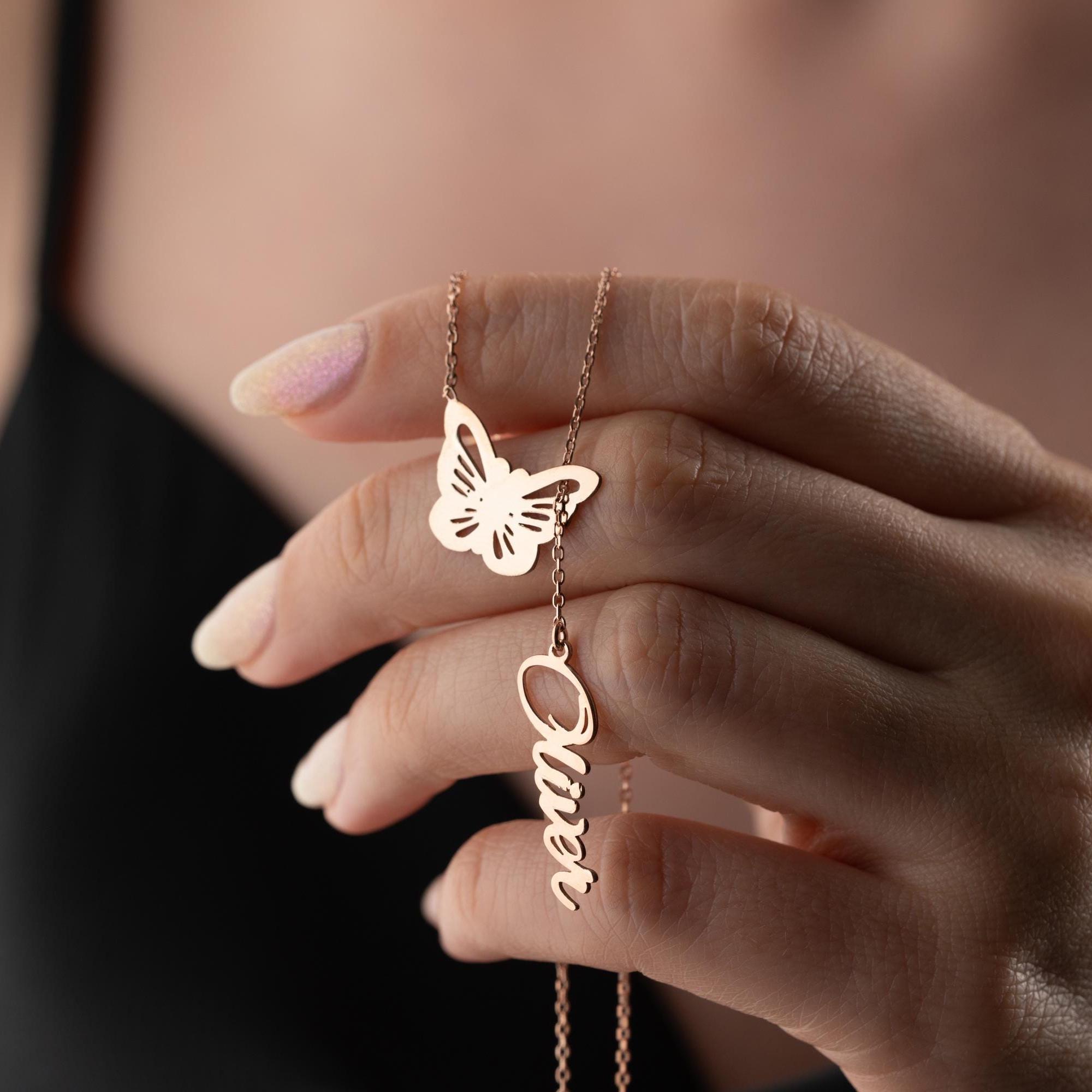Our Custom Birth Butterfly Necklace is the perfect personalized jewelry gift for any occasion. This butterfly name necklace features a delicate butterfly charm with a custom name or initial, making it a unique and meaningful piece. Ideal as a birthday gift for her, Mother’s Day necklace, graduation gift, wedding jewelry, or gift for mom, this dainty butterfly necklace is designed to symbolize transformation, growth, and love. Available in gold plated and sterling silver options, our personalized name necklace is part of the twelve months butterfly collection, perfect for representing each birth month in a stylish way. Whether you’re shopping for a custom gold name necklace, personalized silver necklace, custom initial necklace, or trendy butterfly charm necklace, this piece is a timeless choice. Handmade with care, our customized birthday gift necklace is a thoughtful keepsake that moms, daughters, and loved ones will cherish forever.