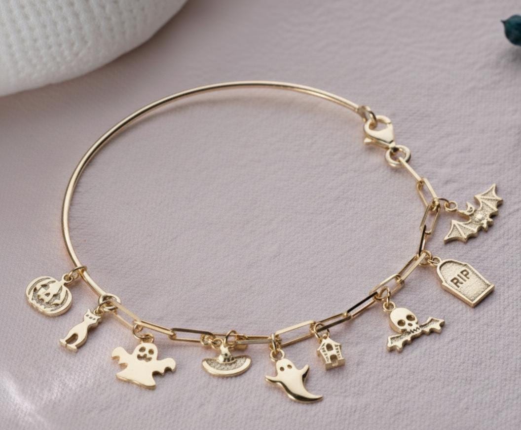 Celebrate the spooky season with our Halloween Charm Wish Bracelet Party Favors, featuring colorful enamel charms like ghost, pumpkin, witch hat, candy, and trick or treat pendants. This spooky ghost bracelet is a fun and unique accessory for Halloween parties, fall style gifts, trick or treat events, and spooky jewelry lovers. Perfect as limited edition Halloween jewelry, DIY bracelet connectors, necklace charms, or party favors, this special collection wish bracelet brings a magical touch to your Halloween.