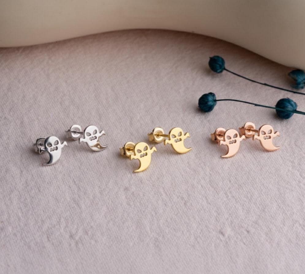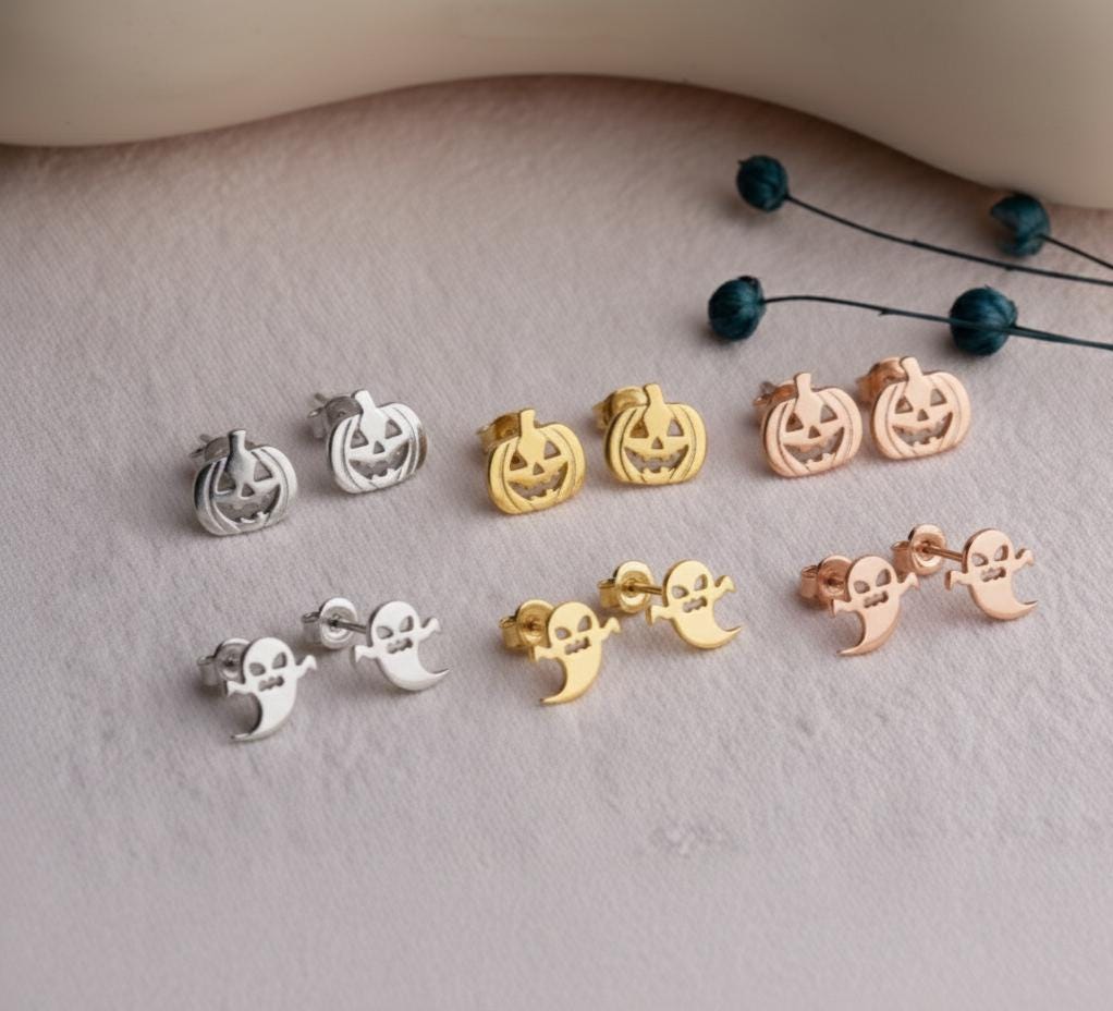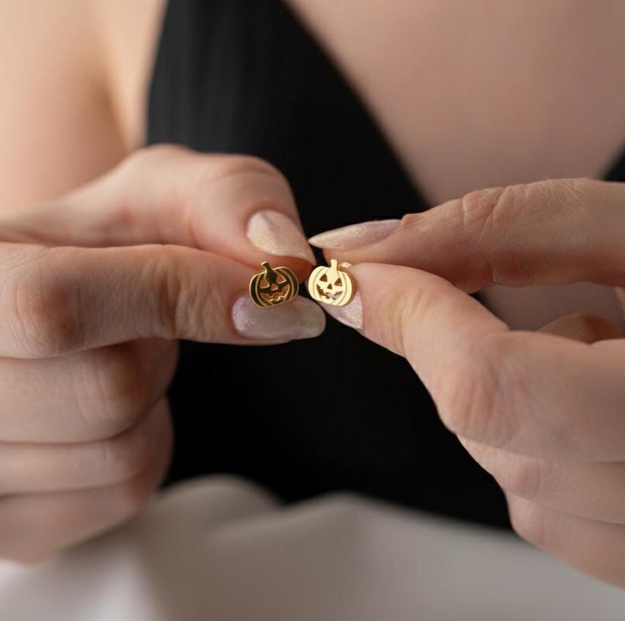 Add a touch of spooky charm to your style with our dainty Halloween earrings – the perfect blend of cute and elegant jewelry for the season. Choose from gold spooky ghost stud earrings, witch cat earrings, and dainty pumpkin studs, all crafted with high-quality materials such as 14K solid gold, rose gold, and sterling silver. These lightweight and comfortable earrings are designed for everyday wear, making them ideal for adding festive sparkle to your Halloween outfits. Whether you’re looking for minimalist ghost earrings, quirky mismatched pumpkin and ghost studs, or fun sterling silver Halloween earrings, our collection has something for everyone. Perfect as a Halloween gift for women, kids, or anyone who loves spooky season jewelry, these earrings bring playful style and seasonal spirit to any look.