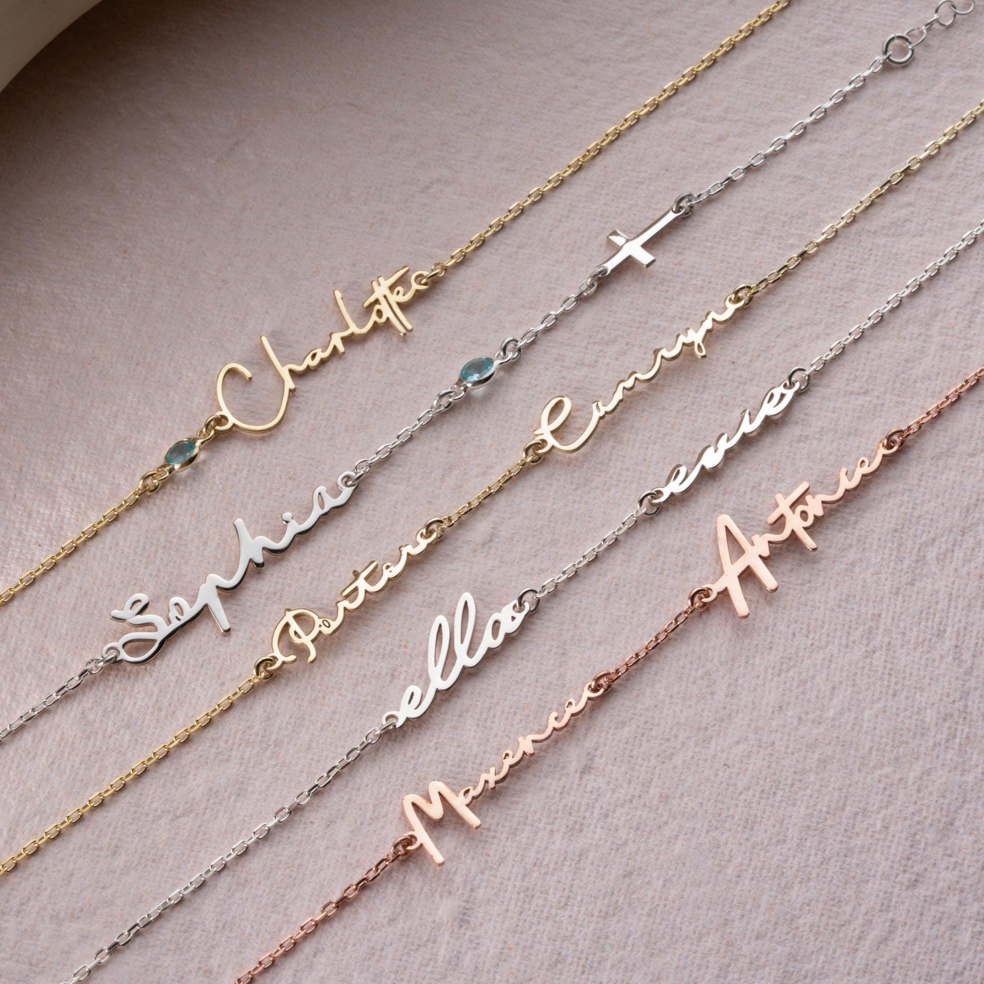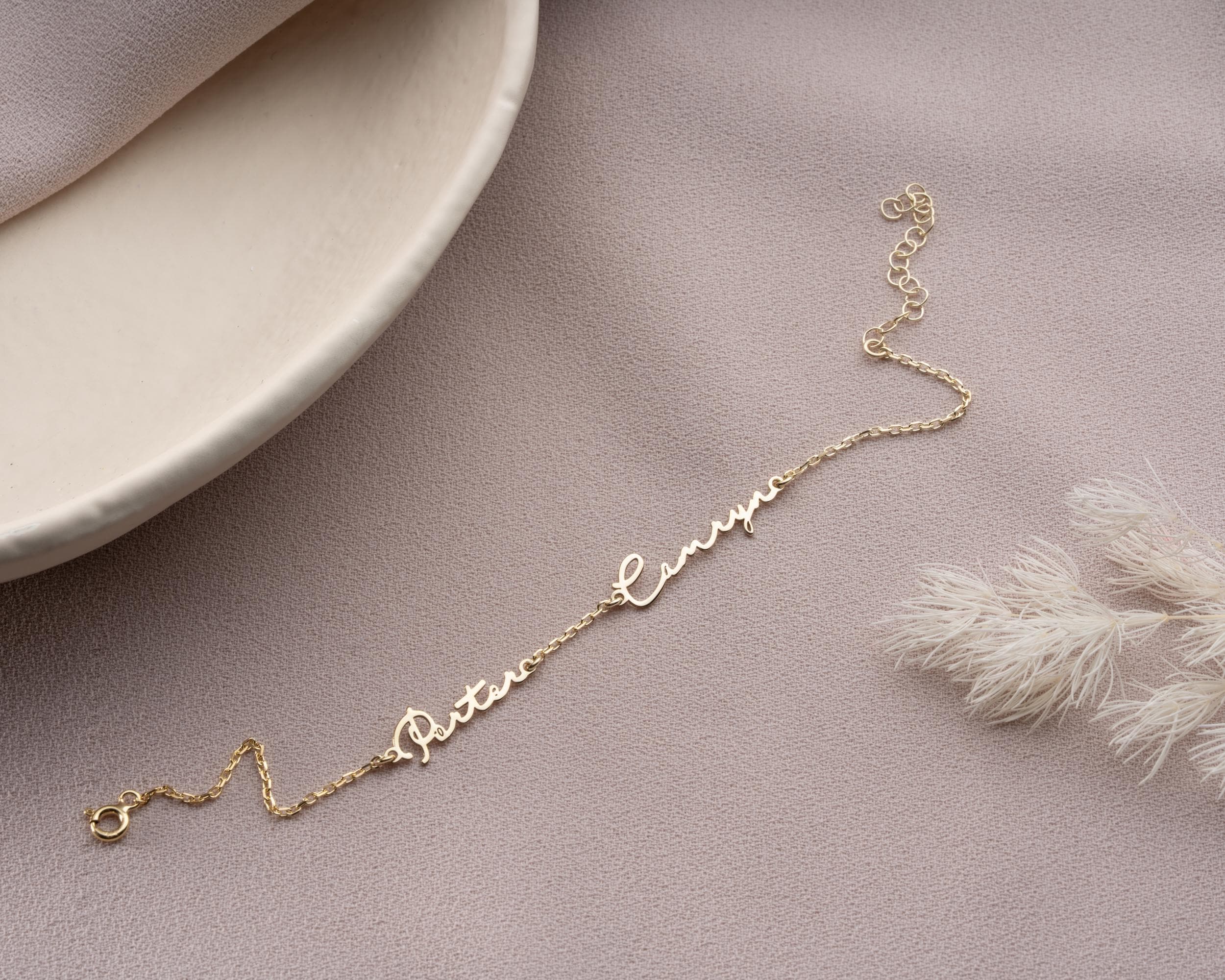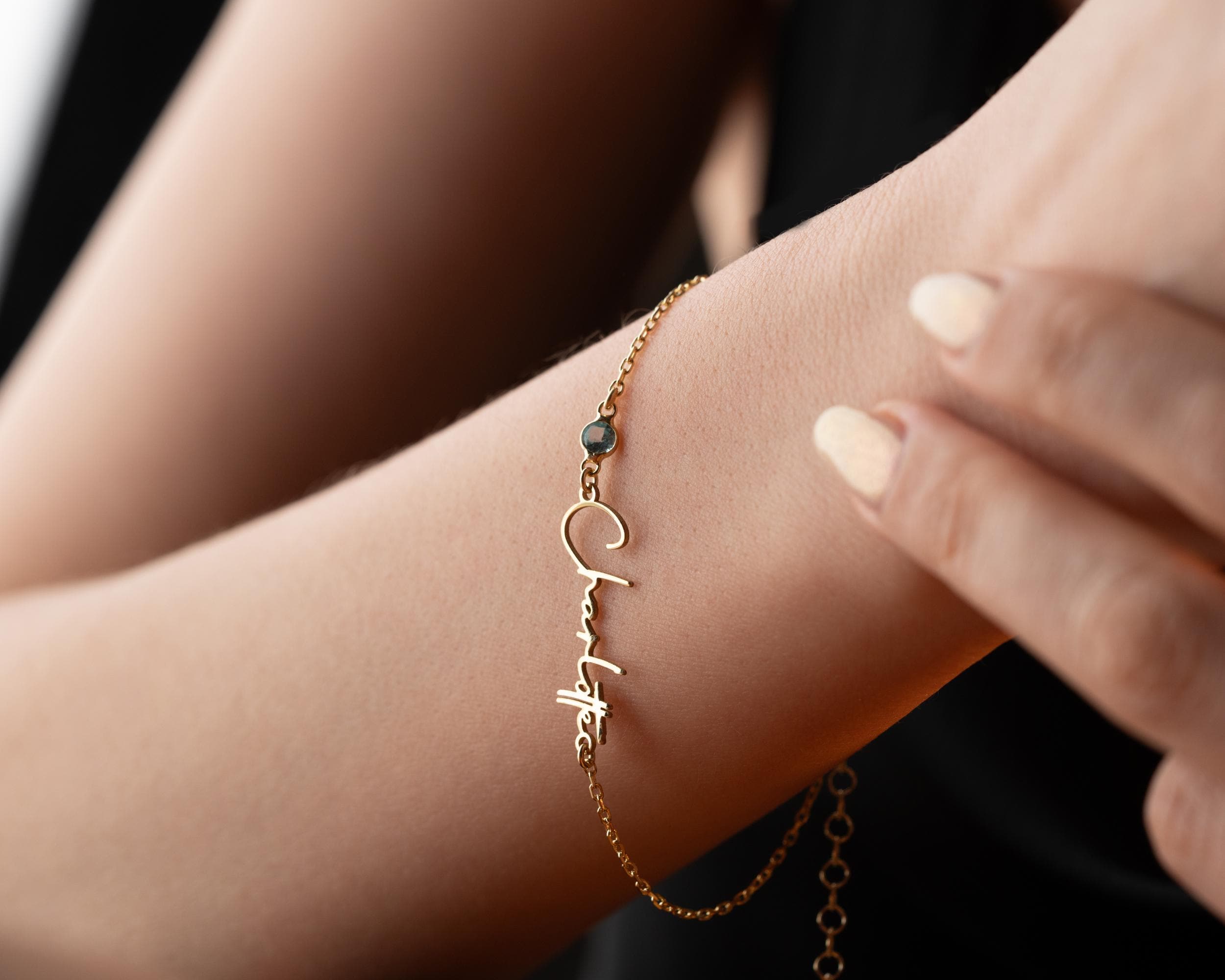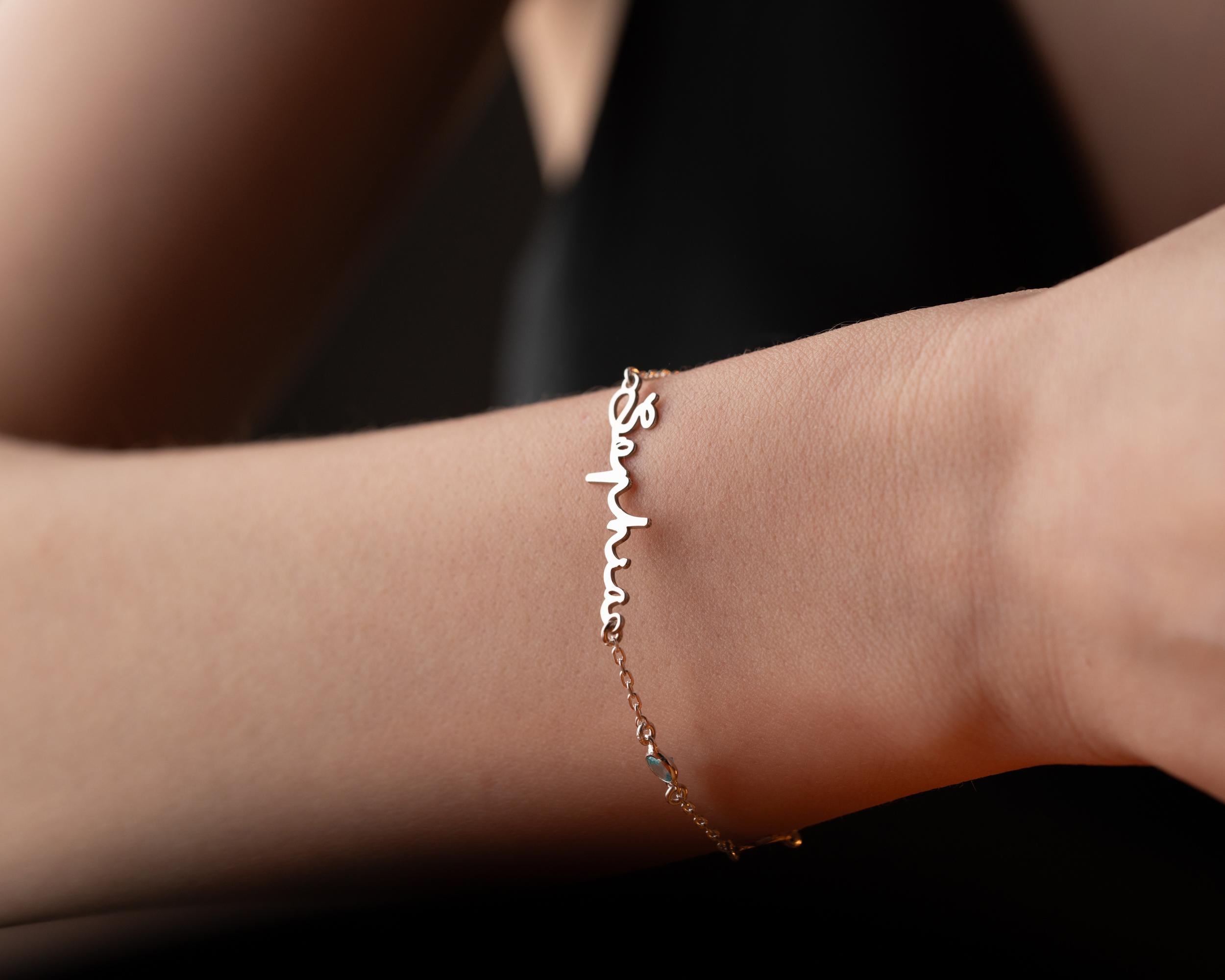 Personalized name bracelets make the perfect gift for loved ones, combining elegance with meaningful customization. Whether you're looking to engrave your name, your children's names, or a special date or symbol, our custom bracelets are the ideal choice. Crafted from high-quality materials like gold, silver, and adorned with birthstones, these bracelets offer a unique touch to any outfit. From new mom gifts to bridesmaid gifts, our handmade jewelry pieces are designed to be cherished for years. Each bracelet is carefully crafted to reflect personal significance, making it the perfect birthday, anniversary, or special occasion gift.