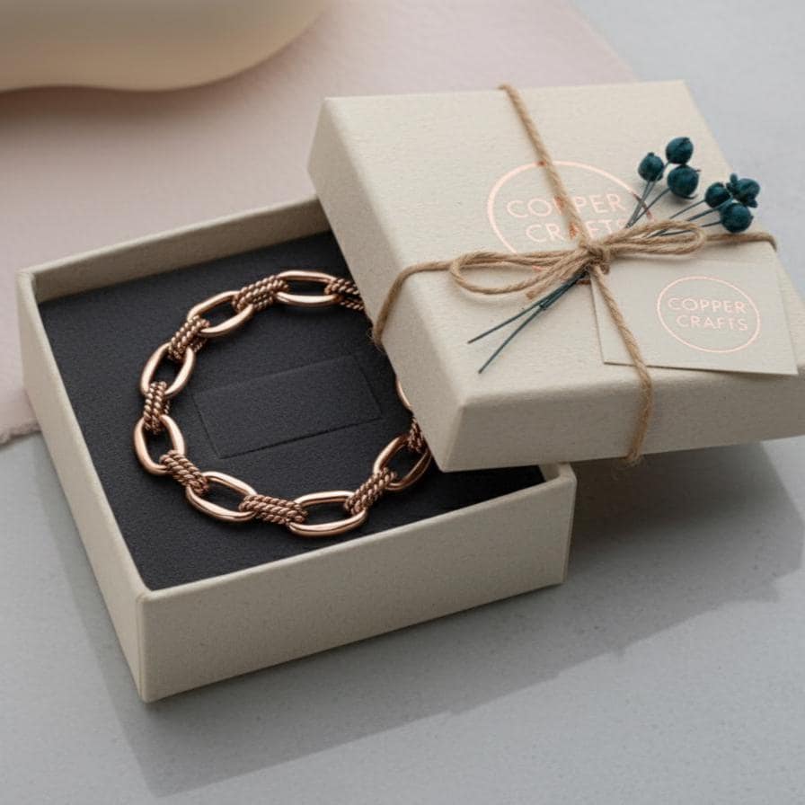 Discover the timeless beauty and natural benefits of our 100% Pure Solid Copper Bracelet, handcrafted with care and precision. Each piece is made from high-gauge pure copper, offering a perfect balance of durability, elegance, and natural wellness. This handmade copper bangle is designed to promote balance and healing energy, making it more than just jewelry—it’s a meaningful accessory that combines ancient tradition with modern style. The adjustable design ensures a comfortable fit for any wrist, making it ideal for both men and women.