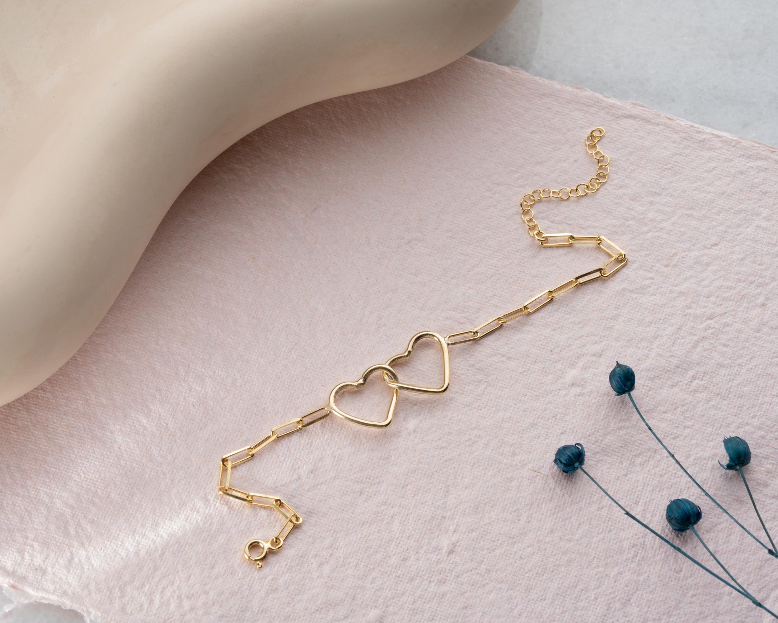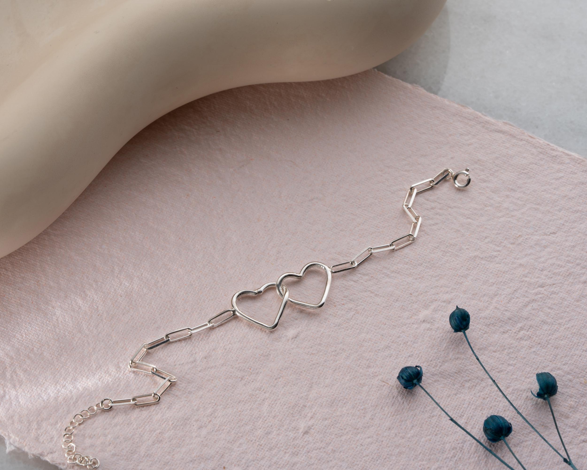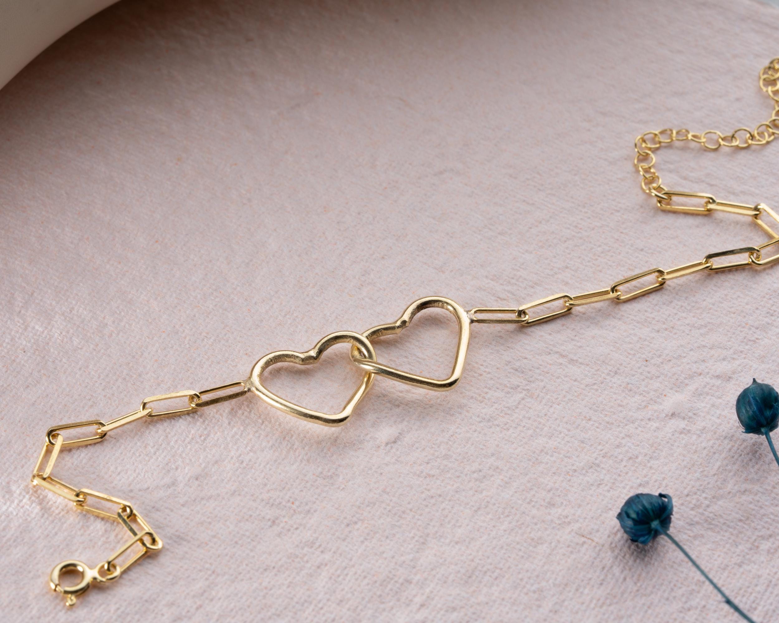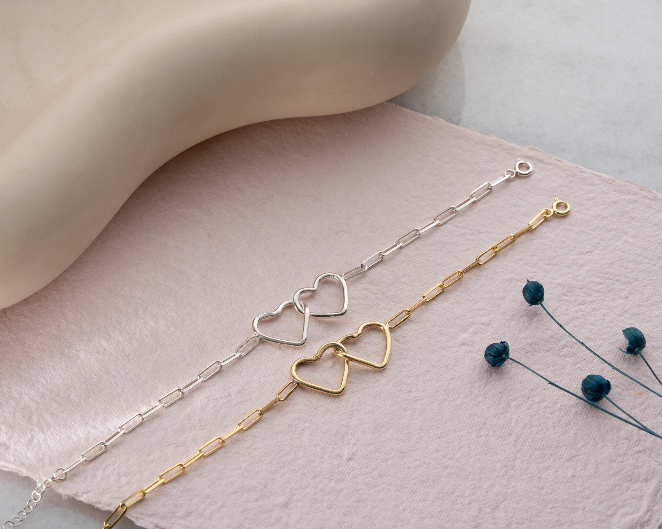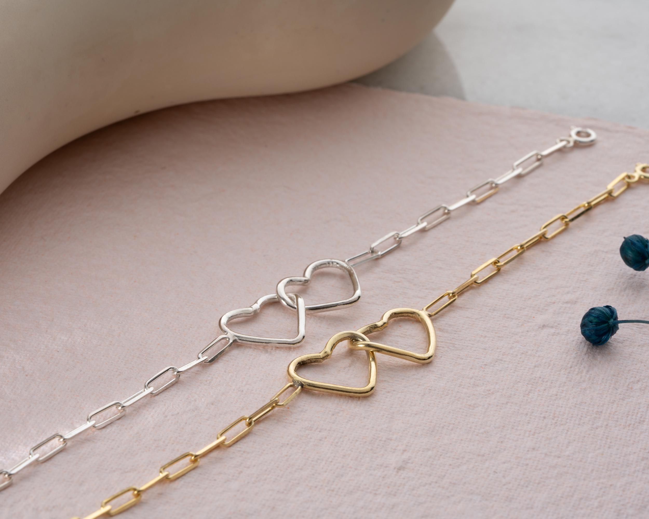 • Style: Two Heart Link Bracelet • Design: Interlocking hearts • Look: Dainty & minimalist • Finish: Elegant & timeless • Made with care and attention to detail