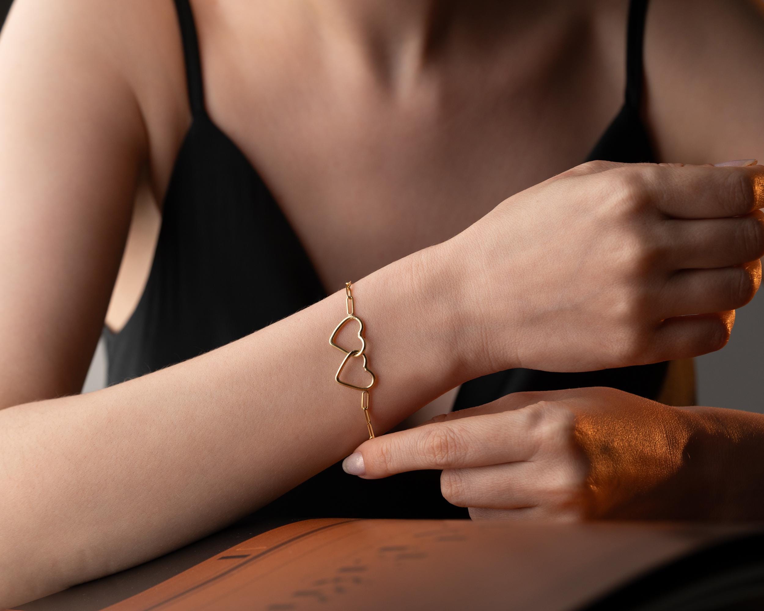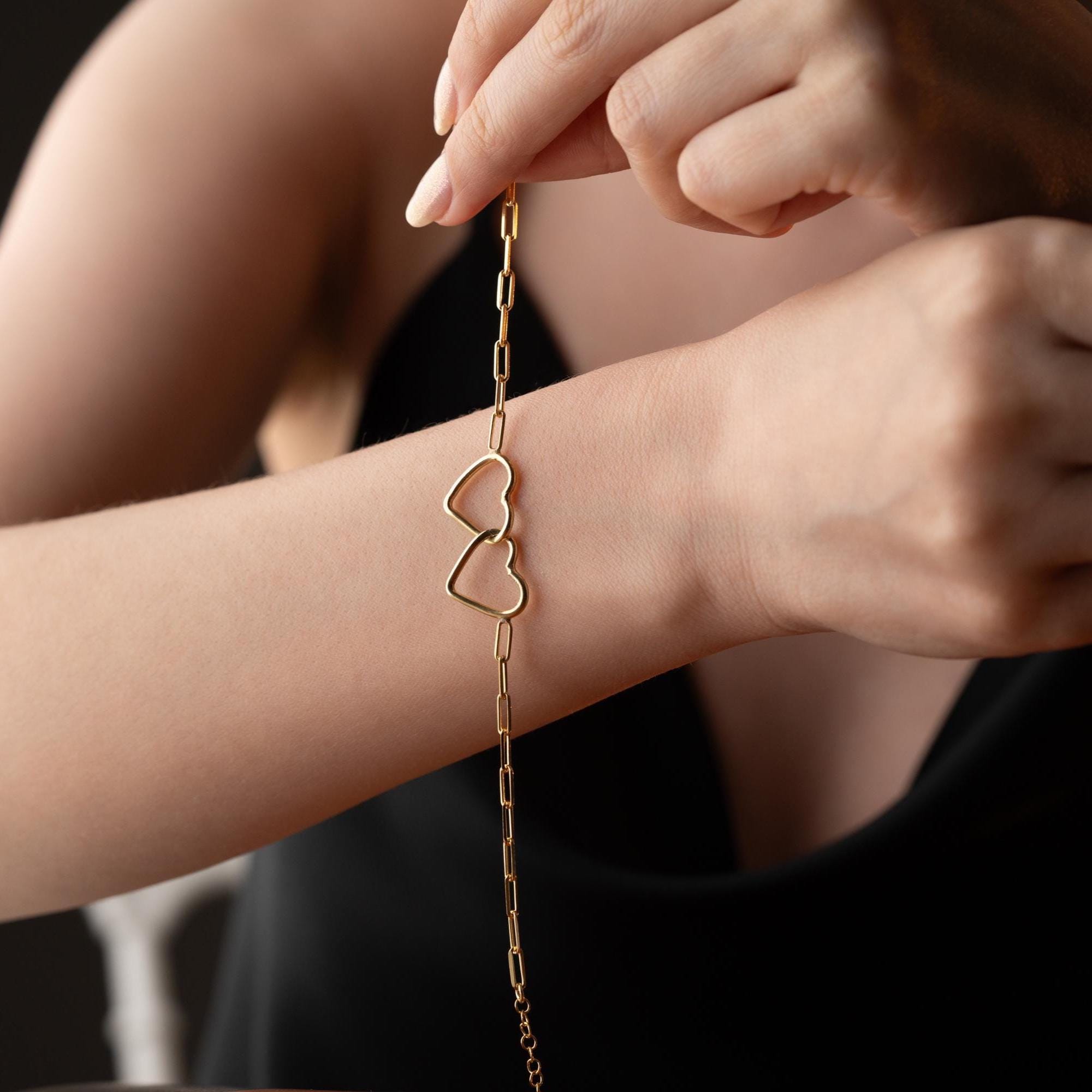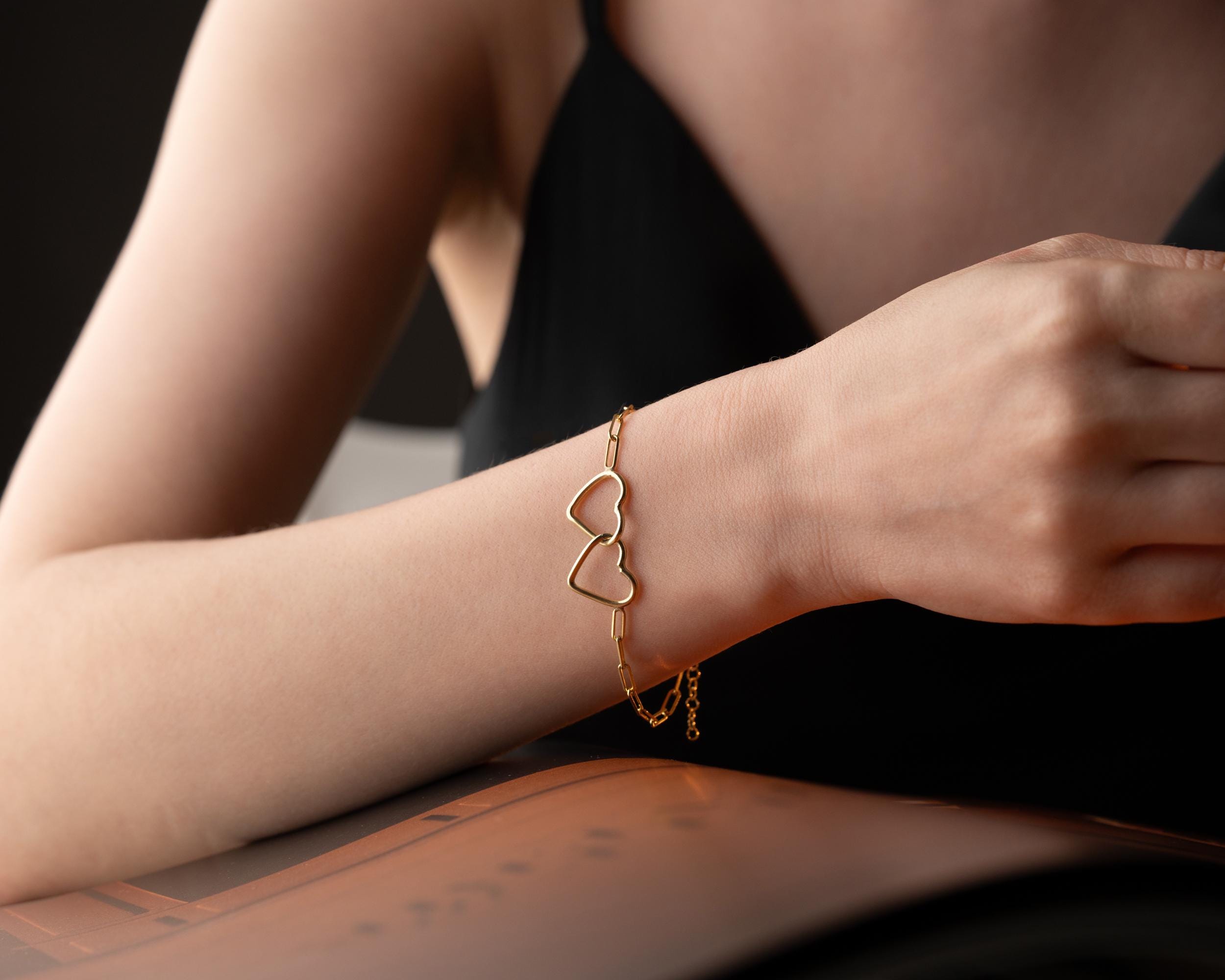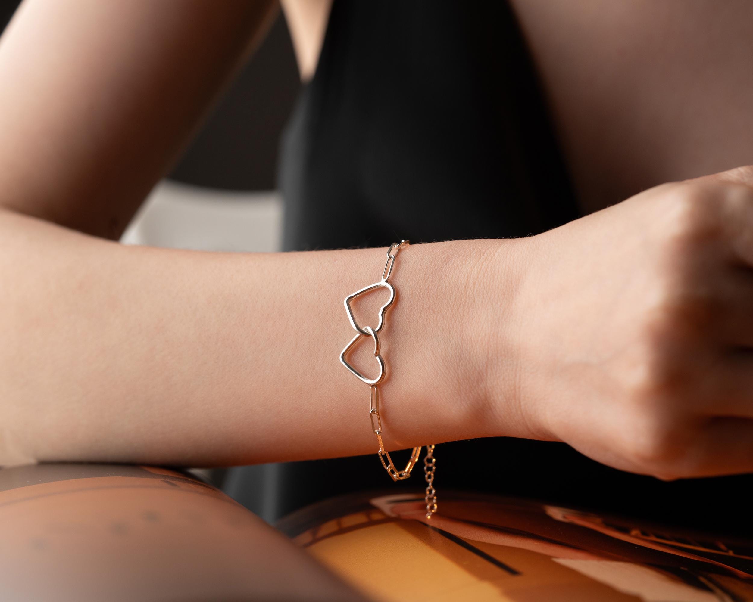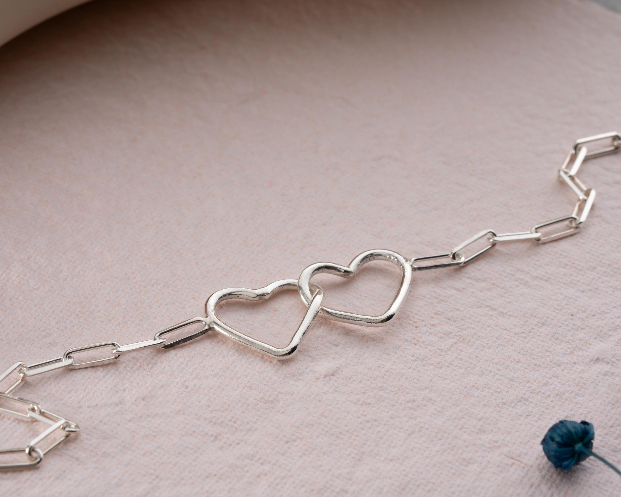 • Style: Two Heart Link Bracelet • Design: Interlocking hearts • Look: Dainty & minimalist • Finish: Elegant & timeless • Made with care and attention to detail