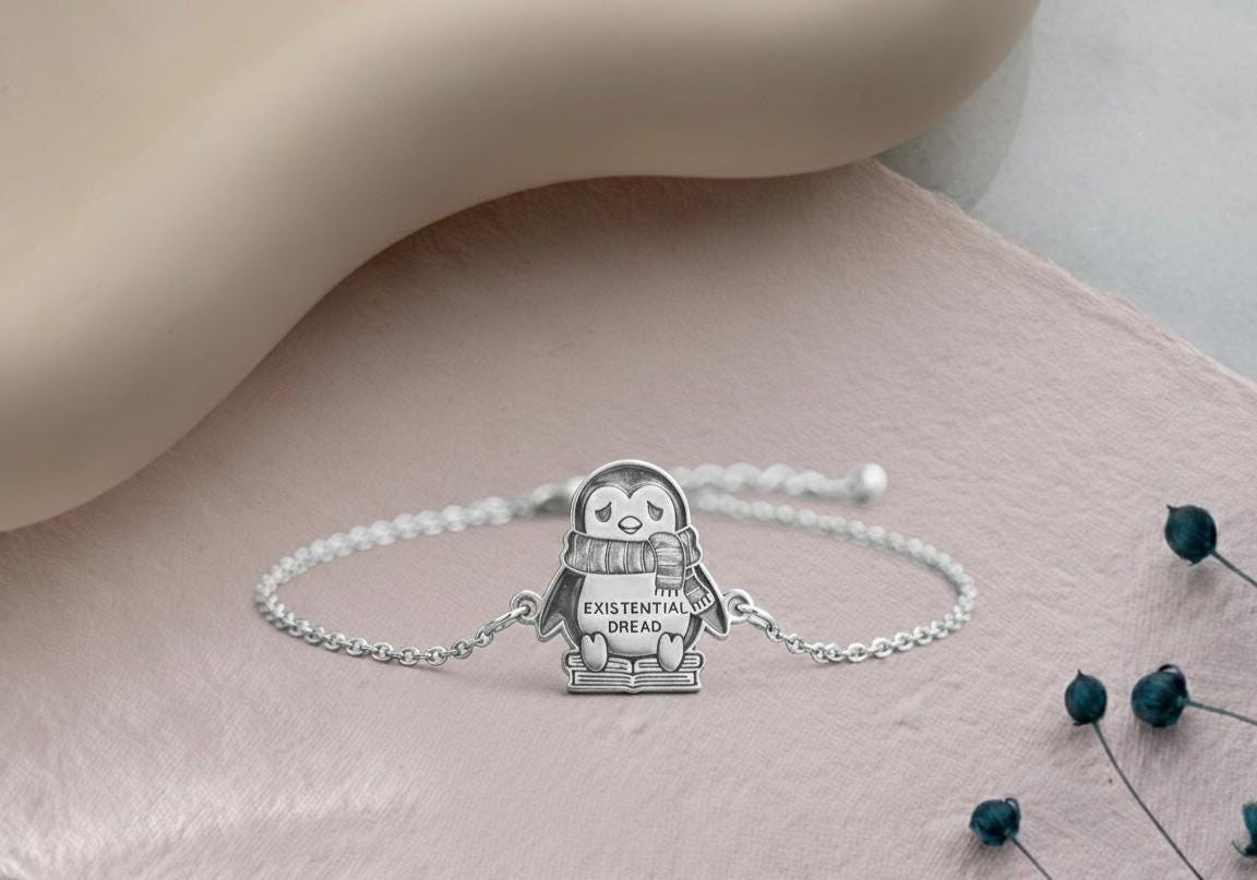 Tiny Nihilist Penguin Bracelet is a minimalist yet expressive piece crafted in high-quality solid gold or sterling silver. The nihilist penguin symbolizes individuality, quiet rebellion, and embracing life with a touch of irony. Its clean lines and subtle shine highlight the refined craftsmanship and modern character of the bracelet. Designed to suit everyday wear, it offers versatile size options to match your personal style. This Nihilist Penguin Bracelet is a meaningful and unique gift choice—perfect for treating yourself or someone who appreciates understated, thoughtful jewelry.