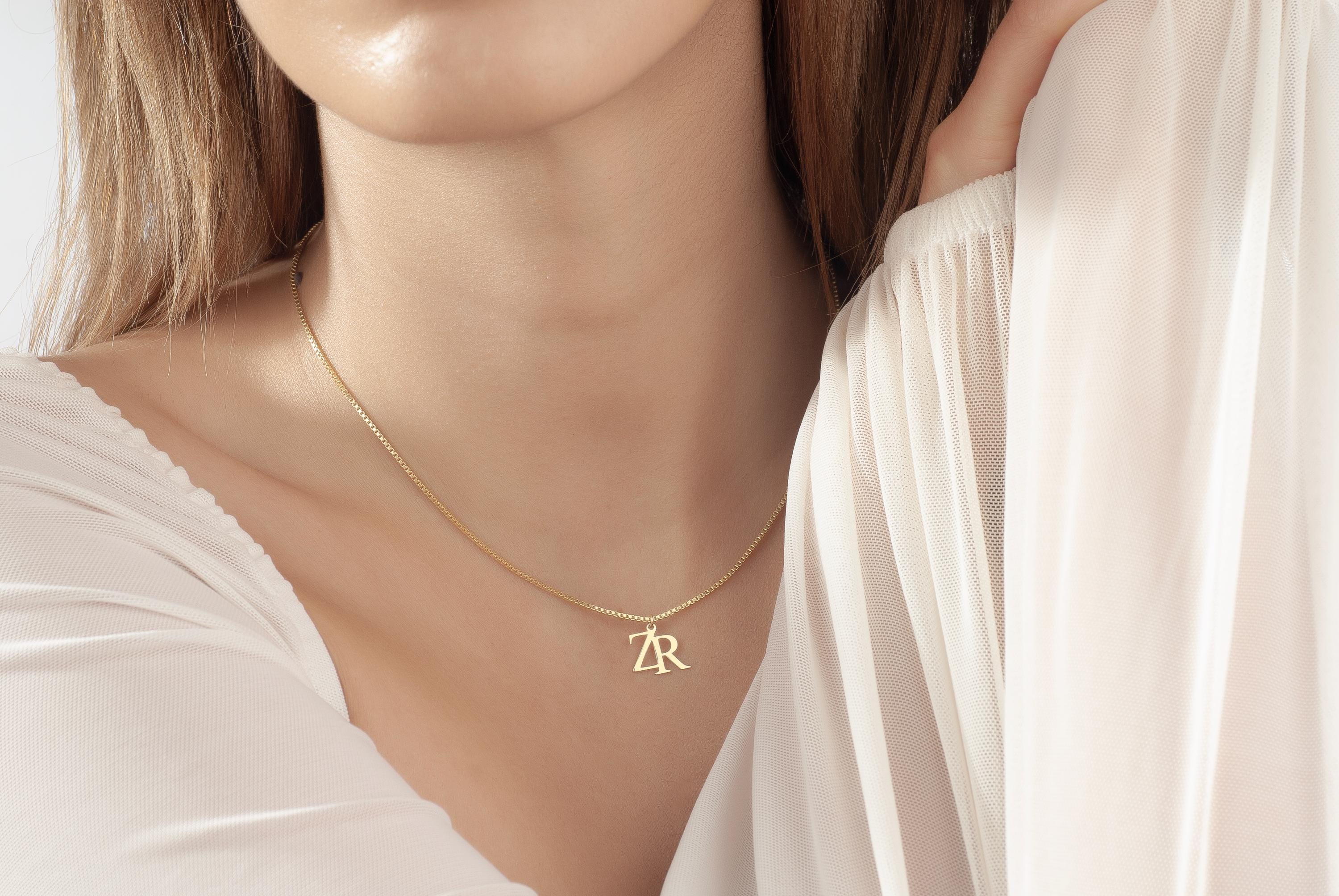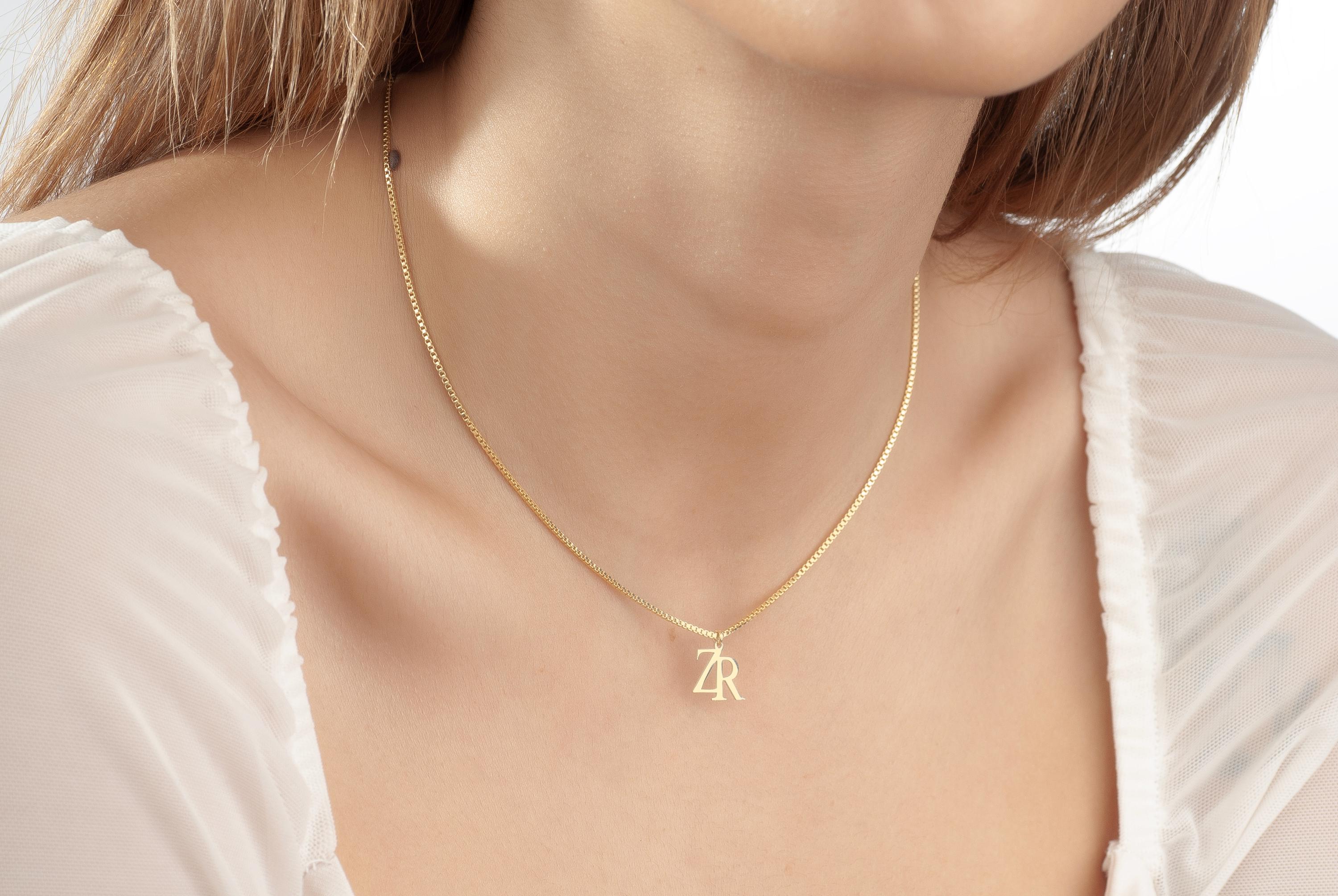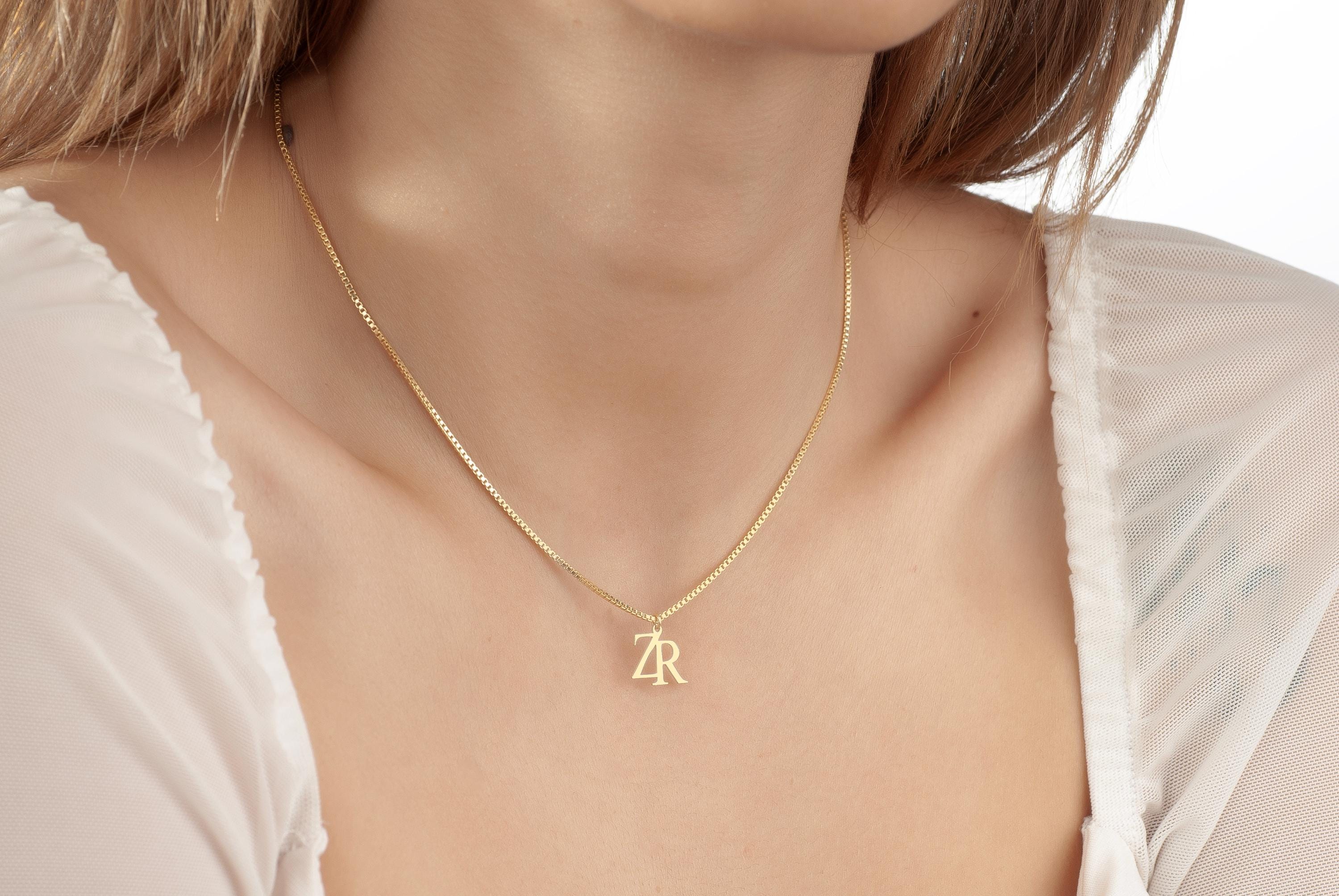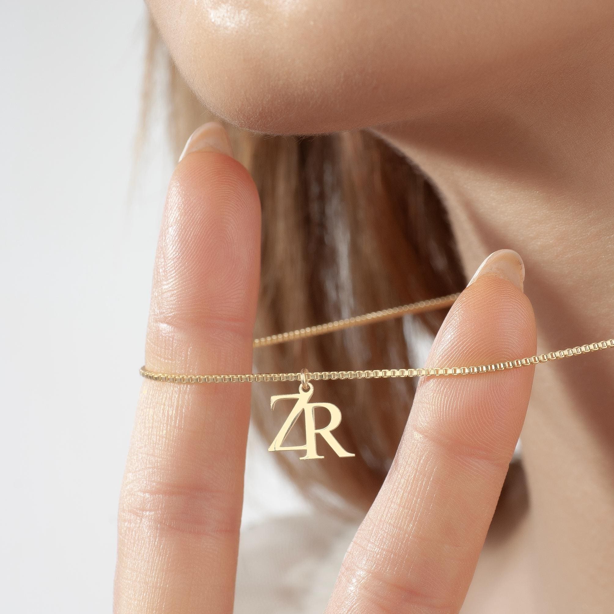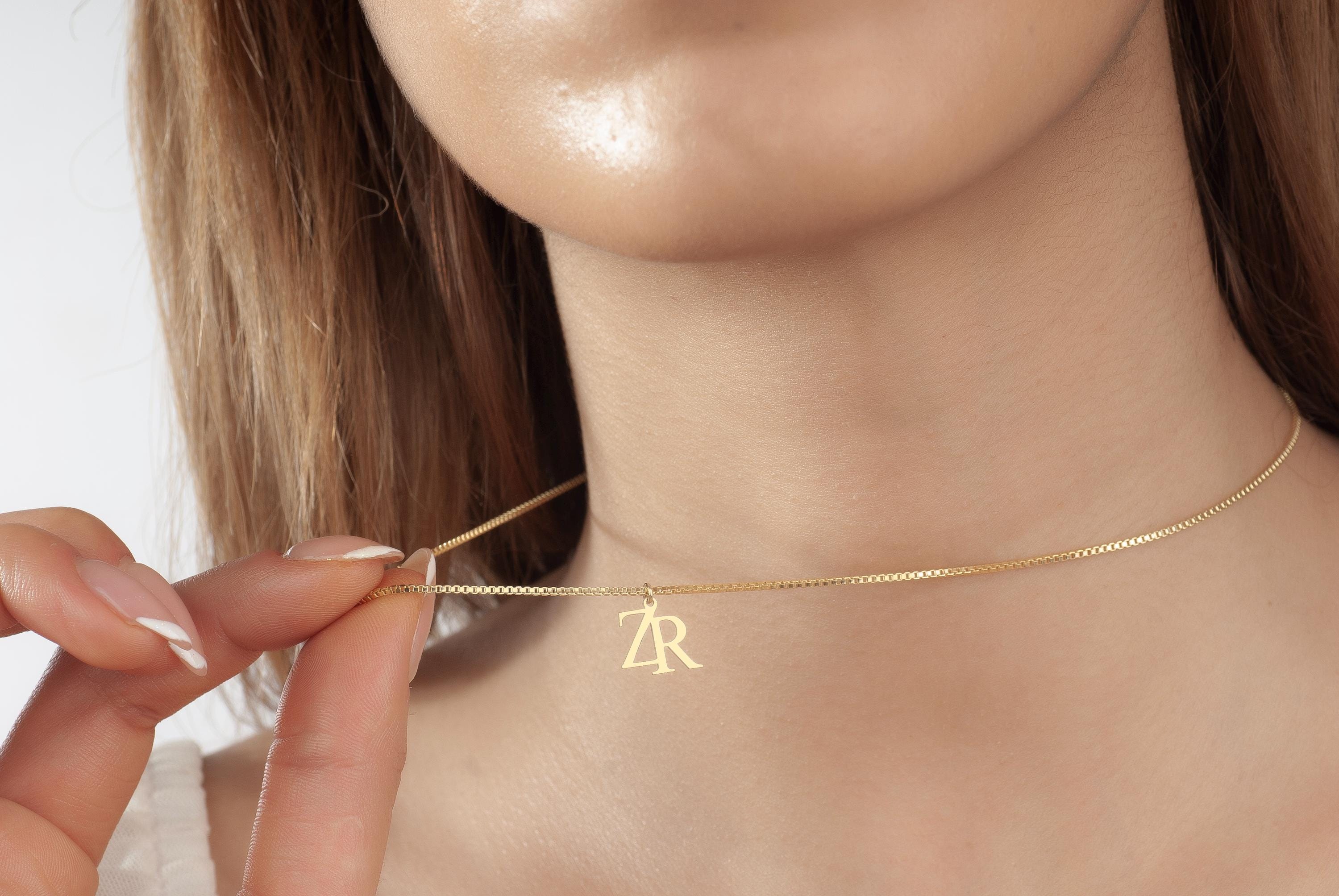 Double initial necklace with box chain, Personalized Couple Letter Necklace, Logo initial necklace, Gold Logo necklace, Two Letter Necklace,