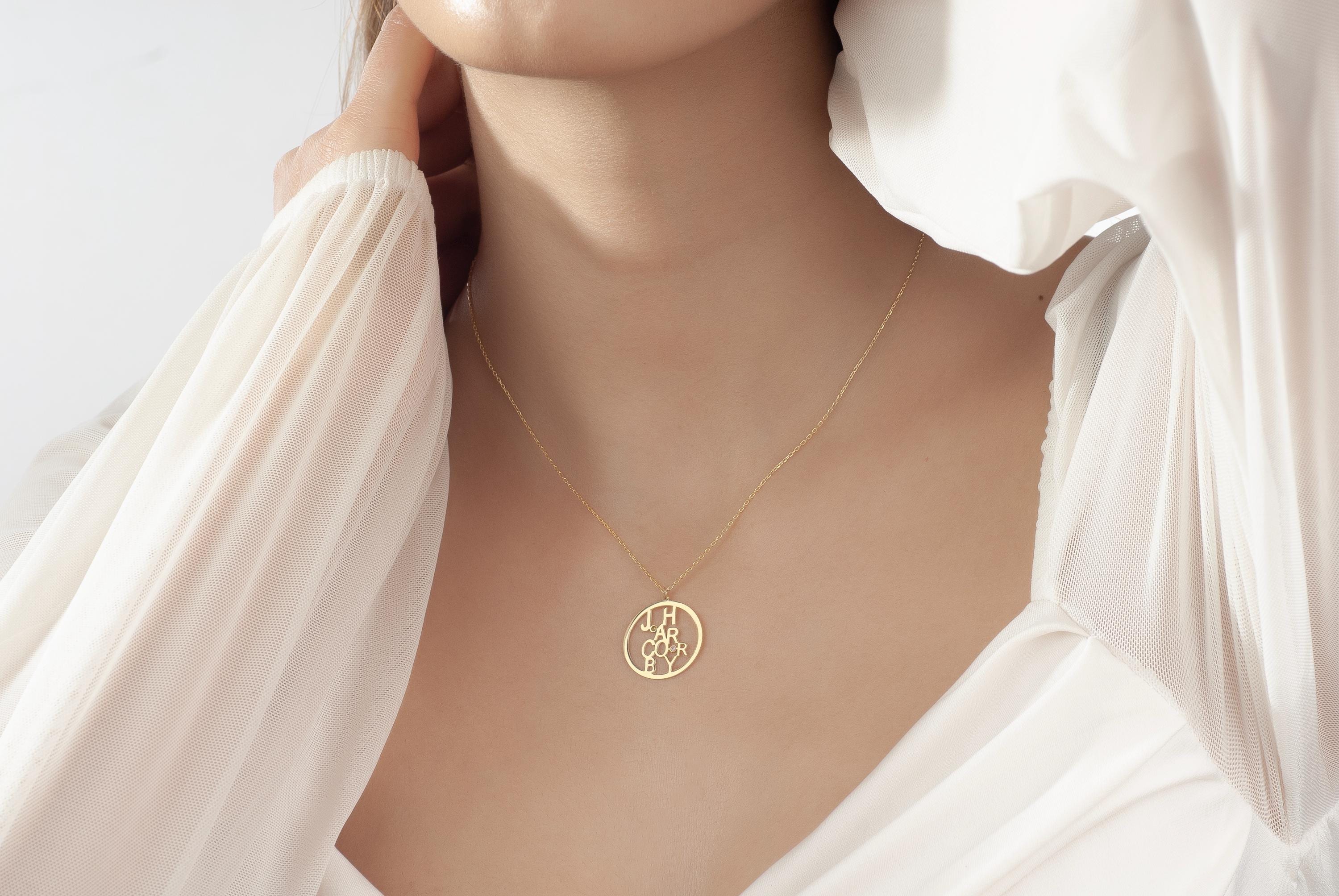 Our Personalized Hugging Name Necklace is produced in 14K Solid Gold and makes a meaningful gift for women. This unique double name necklace symbolizes love, connection, and family bonds, with two names gently embracing each other. It is a wonderful Valentine’s Day, Birthday, or Mother’s Day gift for a loving mom, wife, grandmother, or partner to represent her unique family or relationship.