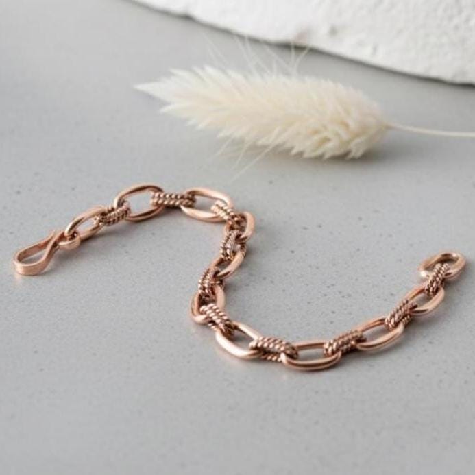 Discover the timeless elegance and natural wellness benefits of our Handmade Pure Copper Link Bracelet, an adjustable healing bangle designed for both men and women. Crafted from high-quality, 100% pure solid copper, this jewelry piece seamlessly blends durability with a sleek, shiny finish that catches the eye. Whether you're seeking a stylish accessory or a wellness tool, this copper chain bracelet offers versatile appeal and meaningful benefits.