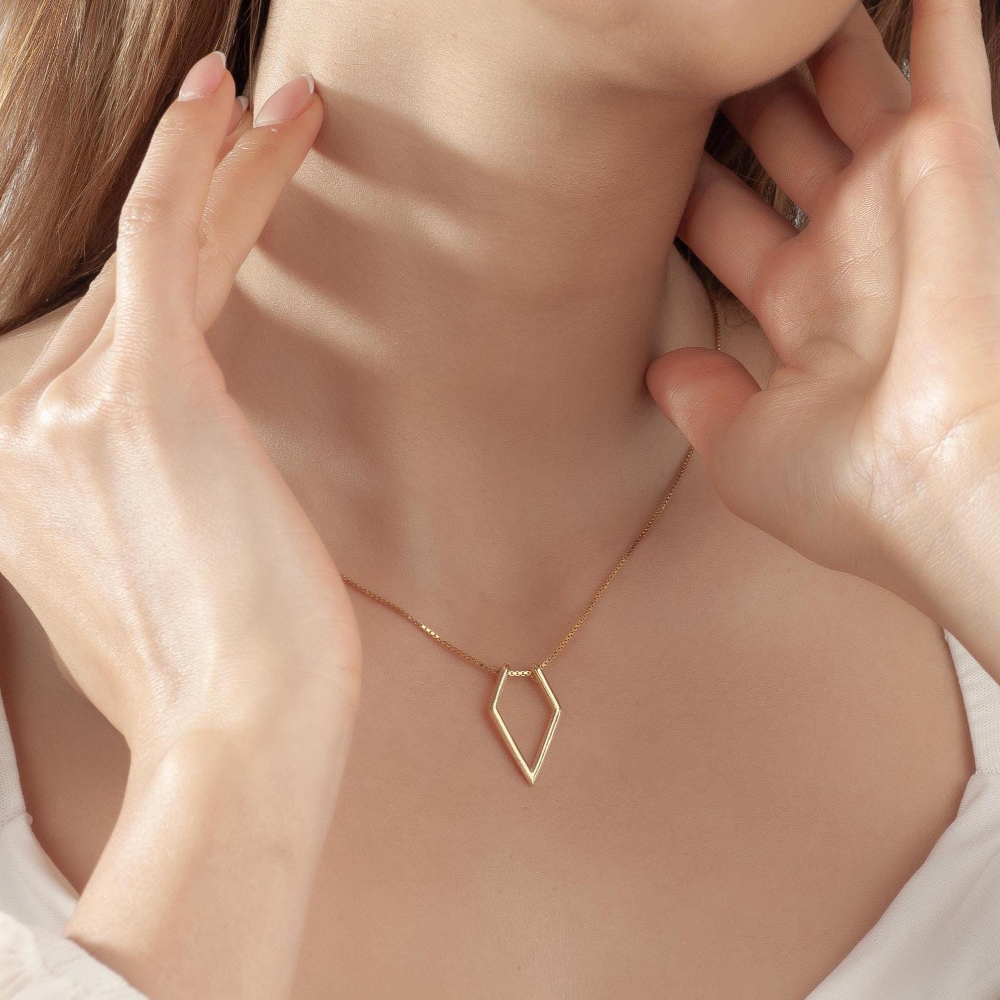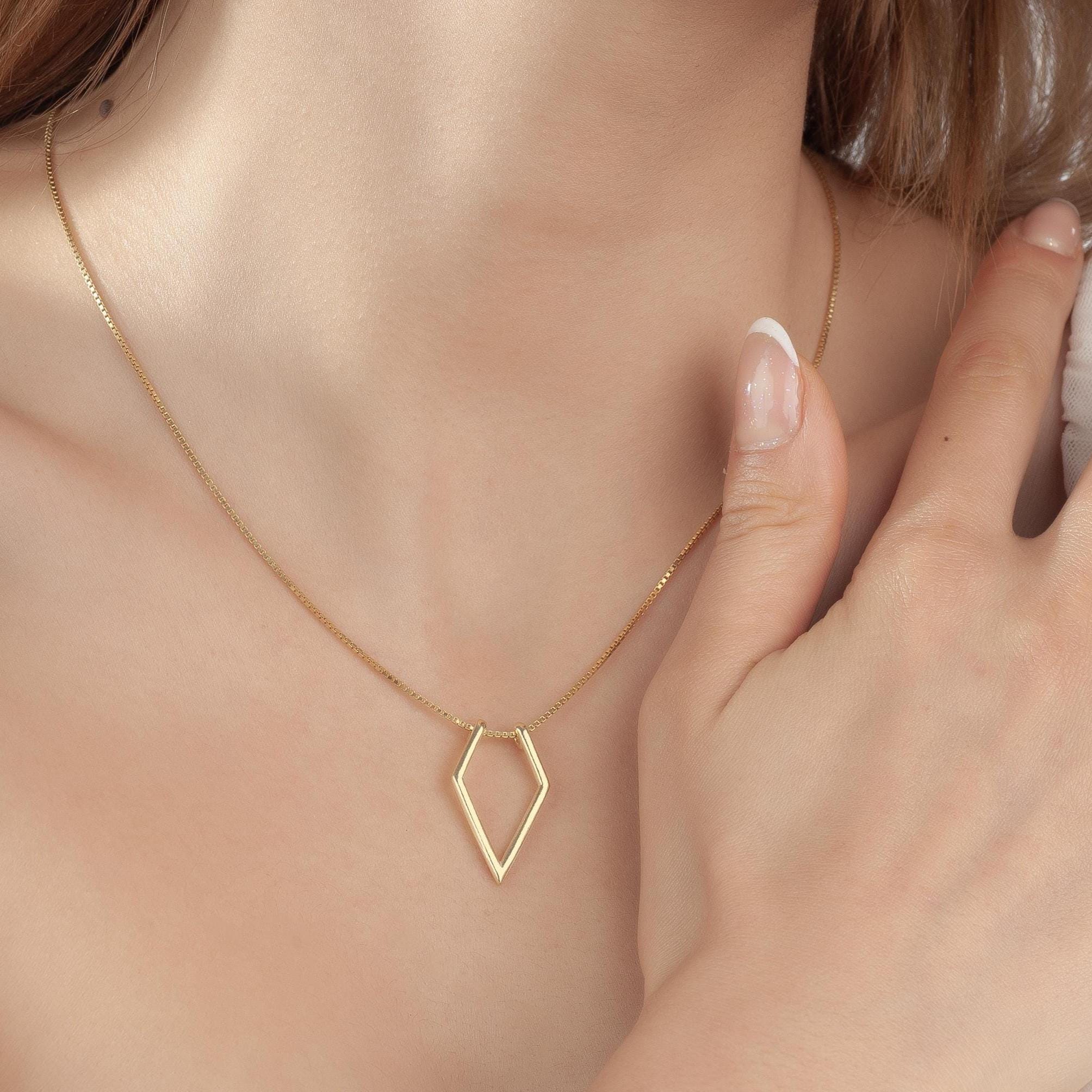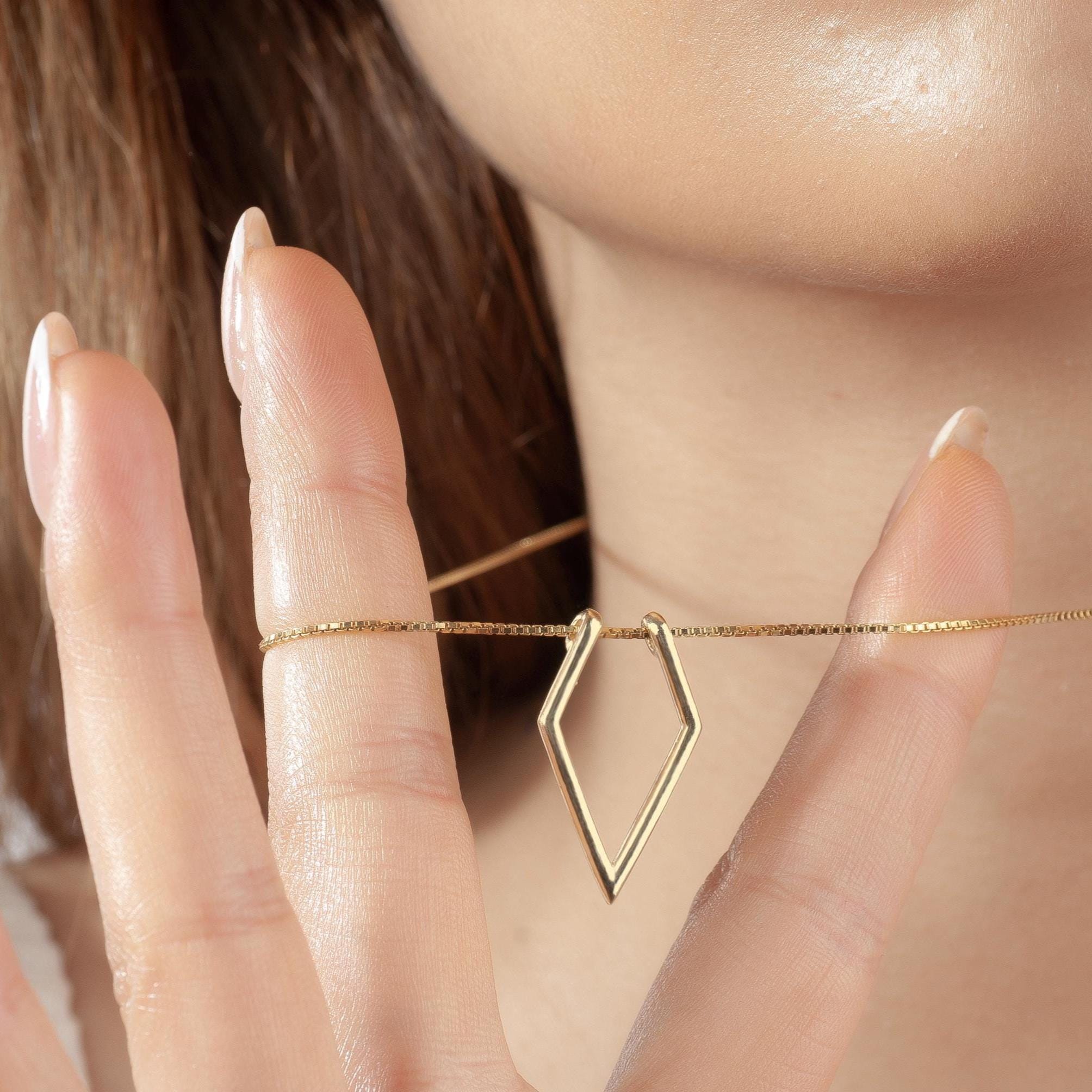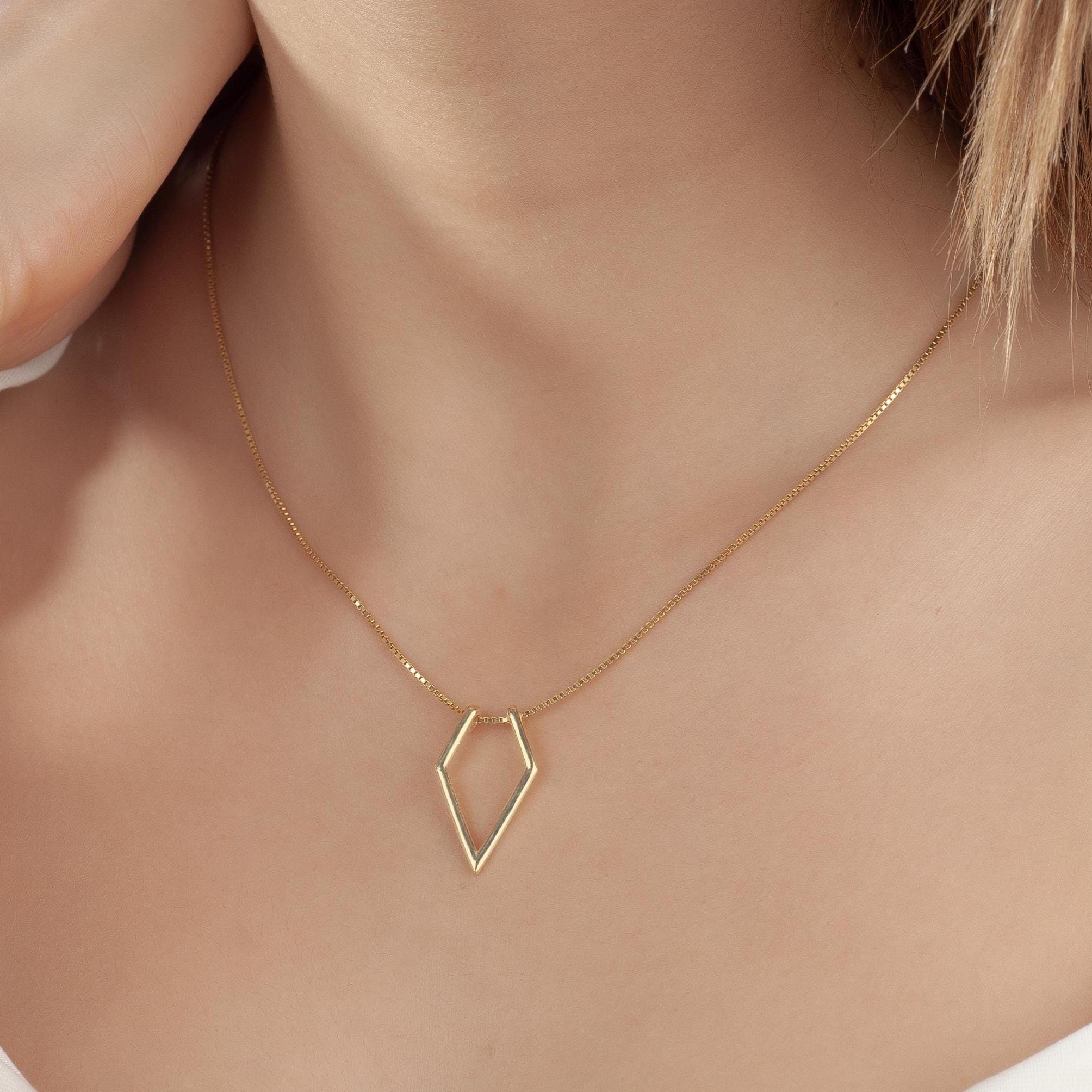 This elegant Ring Keeper Necklace is designed to safely hold your ring while adding a modern minimalist touch to your everyday style. The geometric open pendant allows you to easily slide your ring onto the necklace whenever you need to remove it during work, travel, sports, or daily activities.